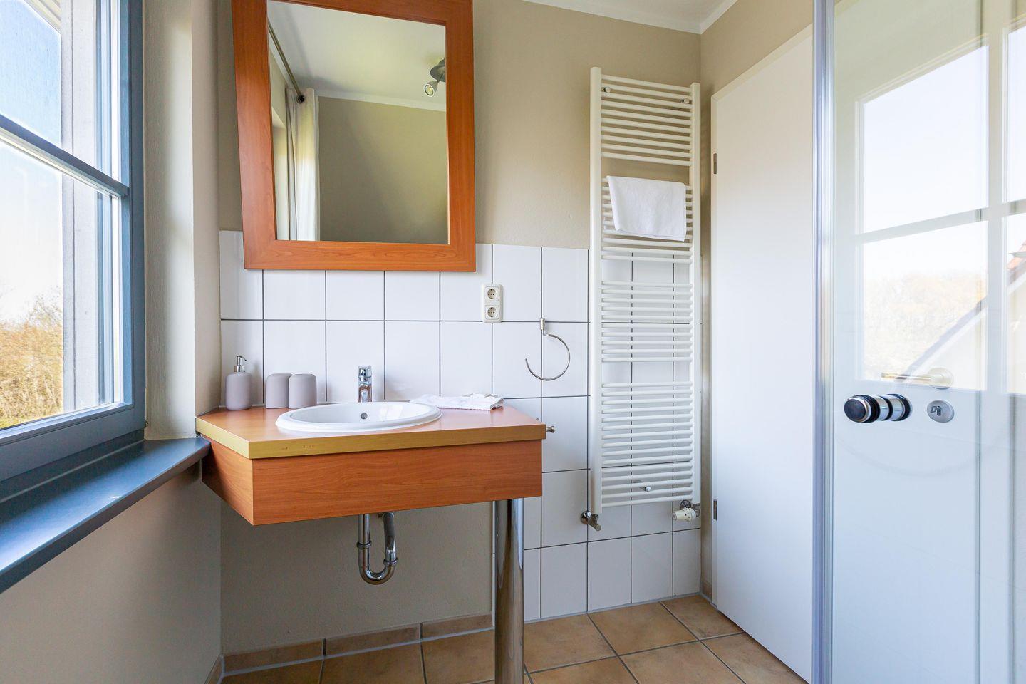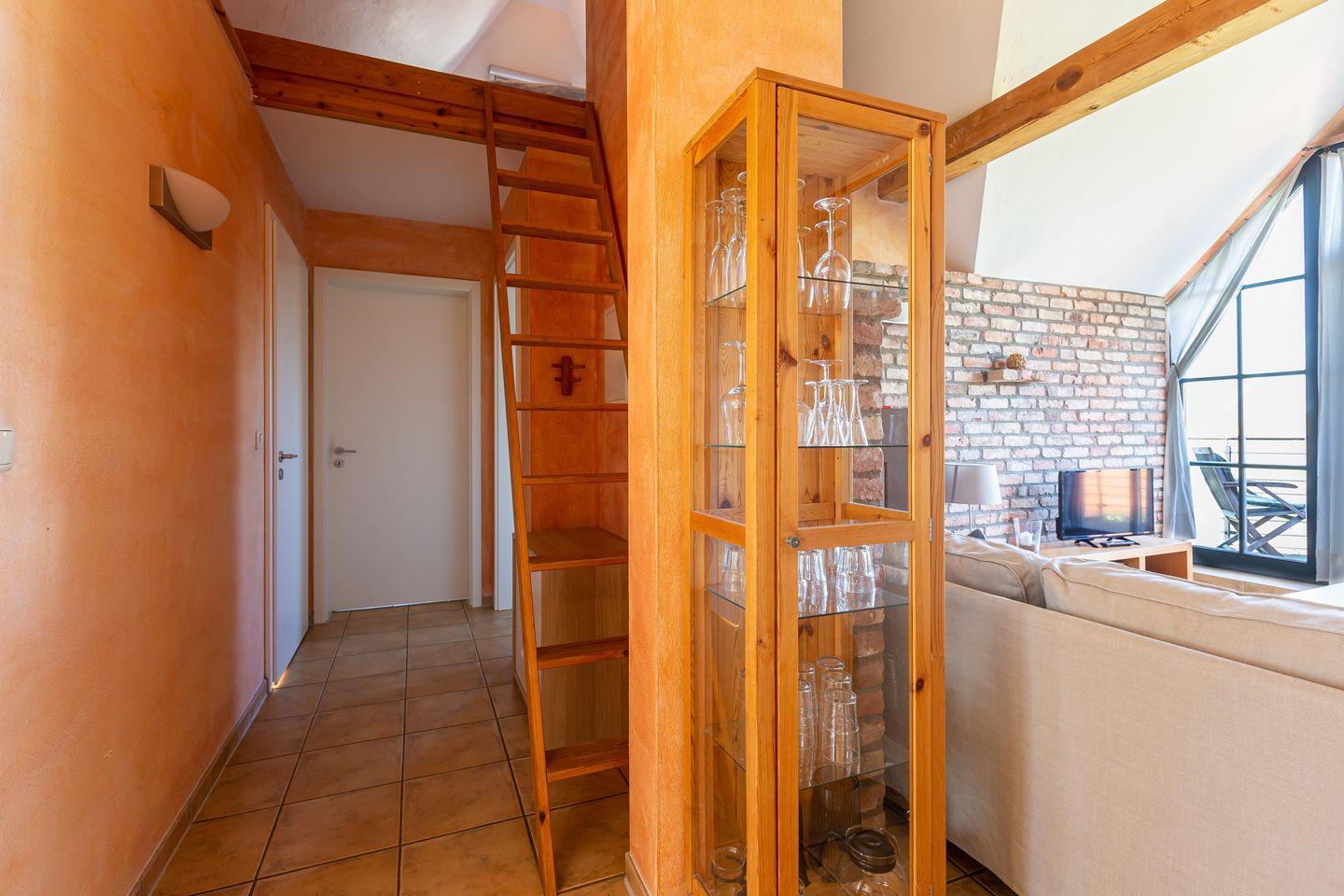 Diese heimelige Maisonette-Wohnung befindet sich im ersten Stock des Strandhauses und garantiert einen traumhaften Blick über den Deich auf der Westseite und auf den Bodden zur Ostseite. Das Herzstück der Wohnung ist der offen gestaltetet Wohn- und Küchenbereich, der mit seinem freigelegten Holzbalken, dem Kamin und der gemauerten Ziegelwand eine dekorative und urgemütliche Wohnatmosphäre schafft. Zur Wohnung gehört eine top ausgestattete Küchenzeile mit Esstisch und Blick auf die überfluteten Fischlandwiesen. Ruhe und Erholung findest du auch im Hauptschlafzimmer, das mit einem Doppelbett und Kleiderschrank ausgestattet ist. Wie von jedem Punkt der Wohnung genießt du auch hier einen fantastischen Blick in die Natur. Ein weiterer Schlafbereich befindet sich im offenen Spitzboden über dem Wohnraum und ist über eine steile Holztreppe begehbar. Vervollständigt wird die Wohnung durch ein modernes Tageslichtbad mit ebenerdiger Dusche.