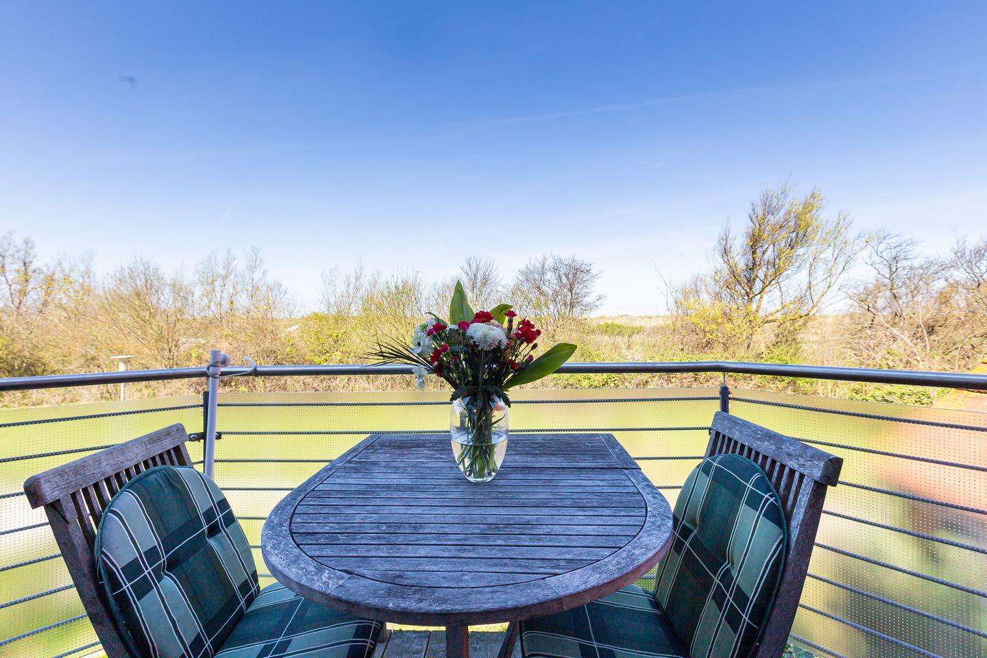 Die Ferienwohnung verfügt über einen Balkon zur Meerseite, der nicht nur einen tollen Blick, sondern auch die klangvollen Rufe der Küstenvögel und das sanfte Rauschen des Meeres bereithält. Hier bekommst du alles, was den Urlaub und die Nähe zum Meer so faszinierend und zeitgleich erholsam macht.
