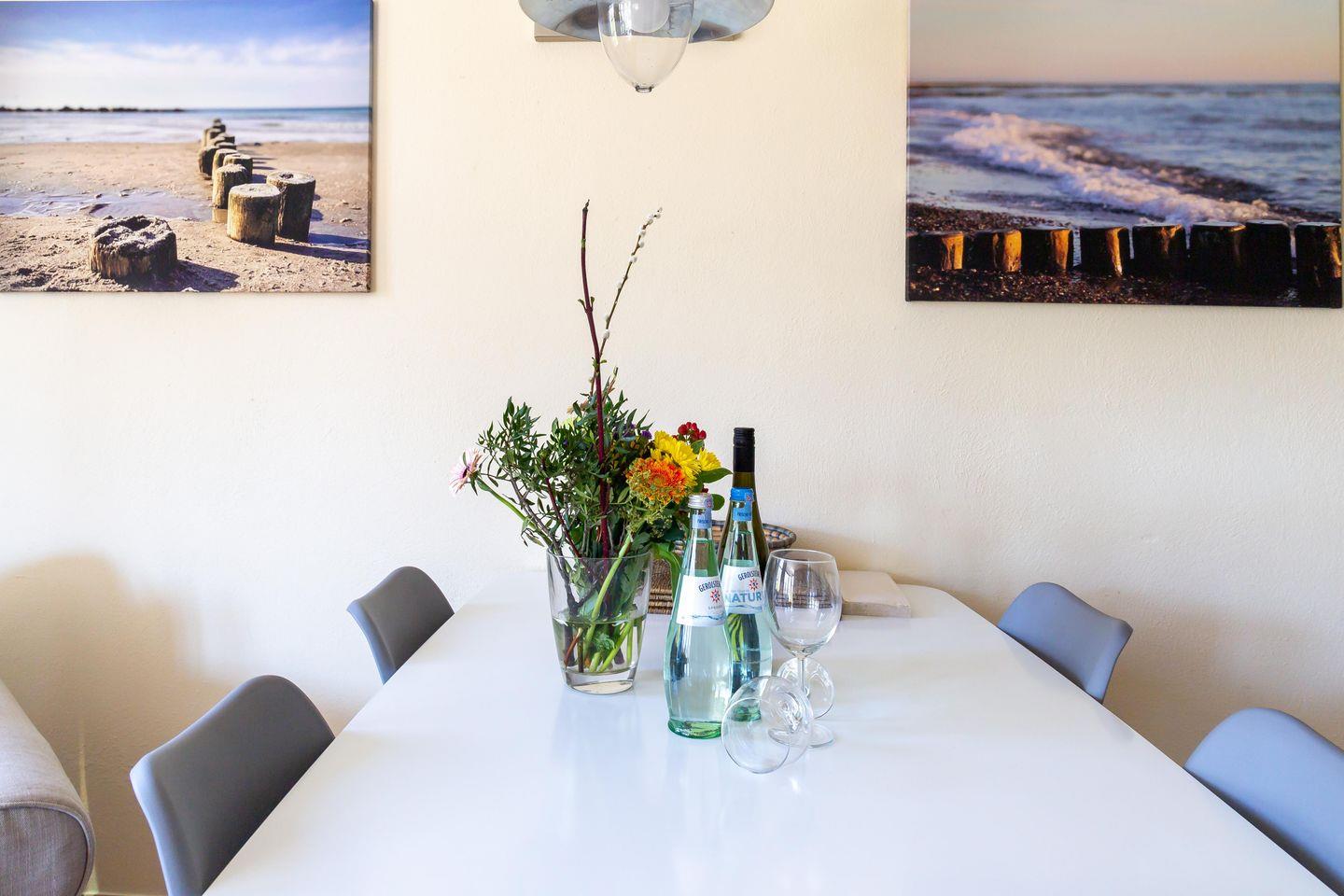 Mit allem ausgestattet was das Urlaubsherz begehrt, findest du hier die perfekte Ferienwohnung für deinen Ostseeurlaub. Mittelpunkt ist der großzügige Wohn-, Küchen und Essbereich der Wohnung. Die voll ausgestattete Küchenzeile, die großzügige Sofalandschaft, der knisternde Kamin und die großen Fensterfronten mit Blick auf die Dünen schaffen einen herrlichen Ort zum Kochen und Klönen. Rückzug und Ruhe versprechen die beiden Schlafzimmer, die mit je einem gemütlichen Doppelbett, Verdunklung und großen Kleiderschrank ausgestattet sind. Passend und liebevoll ausgewählt sind auch die Fotografien an den Wänden der Wohnung, die Zeugnis der wundervollen Naturlandschaft sind, die das Strandhaus umgibt. Abgerundet wird der Wohnkomfort mit einem Tageslichtbad und großzügiger bodengleicher Dusche.