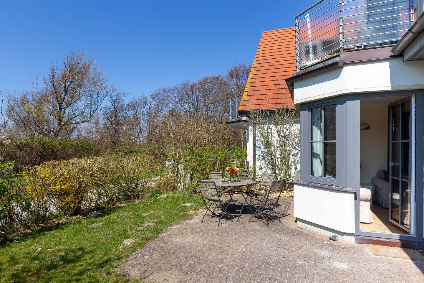 Strandhaus Wustrow: Strandnahe Ferienwohnung mit Kamin, Terrasse und Blick auf die Dünen.