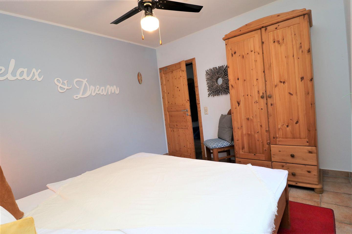 Die Ferienwohnung verfügt über zwei Schlafzimmer, die mit Ihren gemütlichen Betten und zusätzlichen Lüftern, die auch bei geschlosenem Fenster für Frischluft sorgen, ein angenehmes Ambiente bieten. Das helle Wohnzimmer ist der ideale Ort, um gemeinsame Stunden zu verbringen. Genießen Sie Zeit auf der Sofaecke oder am Esstisch, während Sie den Blick nach draußen auf Ihre große Terrasse mit Gartenmöbeln genießen. Hier können Sie Ihren Morgenkaffee mit dem Klang der Wellen im Hintergrund genießen oder abends bei einem Glas Wein die frische Ostseeluft einatmen.