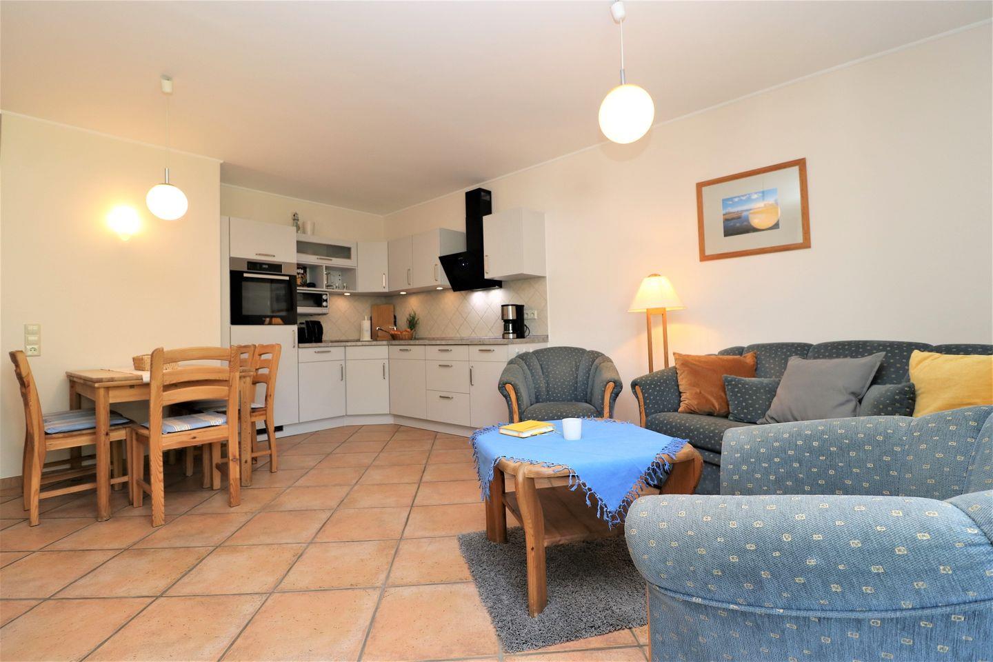 Dieses Appartement für maximal 4 Personen bietet auf gemütlichen 70 m² alles für einen erholsamen Urlaub. Es befindet sich in einer ruhigen Lage und verfügt über eine Terrasse mit Westausrichtung, auf der Sie den Nachmittag und Abend in der Sonne genießen können. Das Appartement besteht aus einem Wohnzimmer mit einer integrierten Küchenzeile und einem Kamin, der für eine behagliche Atmosphäre sorgt. Das Schlafzimmer ist mit einem Doppelbett ausgestattet, während das zweite Schlafzimmer mit Einzelbetten für eine komfortable Unterbringung sorgt. Das Badezimmer ist mit einer Dusche und einem WC ausgestattet und bietet zusätzlich eine Sauna, die für zusätzlichen Komfort sorgt – ideal zum Entspannen nach einem aktiven Tag. Ein Pkw-Stellplatz befindet sich direkt auf dem Grundstück und sorgt für bequemen Zugang. Haustiere sind in diesem Appartement nicht gestattet, und das Rauchen ist ebenfalls nicht erlaubt. WLAN ist in diesem Appartement leider nicht verfügbar. Dieses Appartement ist der perfekte Ort, um Ruhe zu finden und die Natur zu genießen – ideal für eine kleine Auszeit an der Ostsee!