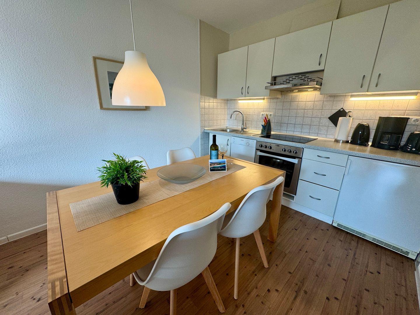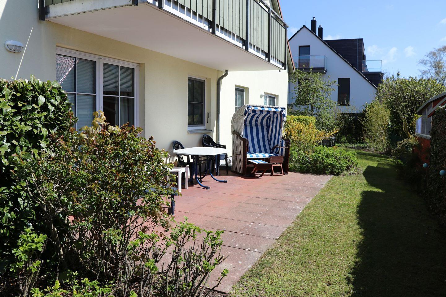 Dieses gemütliche Erdgeschoss-Appartement bietet auf ca. 51 m² Platz für bis zu 4 Personen und eignet sich hervorragend für einen erholsamen Aufenthalt an der Ostsee. Das Wohnzimmer ist mit einer Schlafcouch ausgestattet, die bei Bedarf zusätzlichen Schlafplatz bietet. Zudem gibt es eine integrierte Küchenzeile, die Ihnen ermöglicht, Ihre Mahlzeiten bequem zuzubereiten. Das Schlafzimmer verfügt über ein gemütliches Doppelbett, das für eine erholsame Nachtruhe sorgt. Das Badezimmer ist mit einer Dusche und einem WC ausgestattet. Genießen Sie den Blick auf die Terrasse, die nach Süden ausgerichtet ist und mit einem Strandkorb ausgestattet ist – ideal für entspannte Stunden im Freien, um den Tag in Ruhe zu genießen. Für WLAN ist selbstverständlich gesorgt, sodass Sie jederzeit bequem online gehen können. Der abschließbare Fahrradraum bietet Platz für Ihre Fahrräder und sorgt dafür, dass diese während Ihres Aufenthalts sicher aufbewahrt werden können. Der PKW-Stellplatz Nr. 10 befindet sich direkt auf dem Grundstück und sorgt für eine unkomplizierte Parkmöglichkeit. Haustiere sind in diesem Appartement nicht gestattet, ebenso ist das Rauchen nicht erlaubt. Dieses Appartement bietet eine ideale Mischung aus Komfort und praktischer Ausstattung – perfekt für einen entspannten Urlaub an der Ostsee.