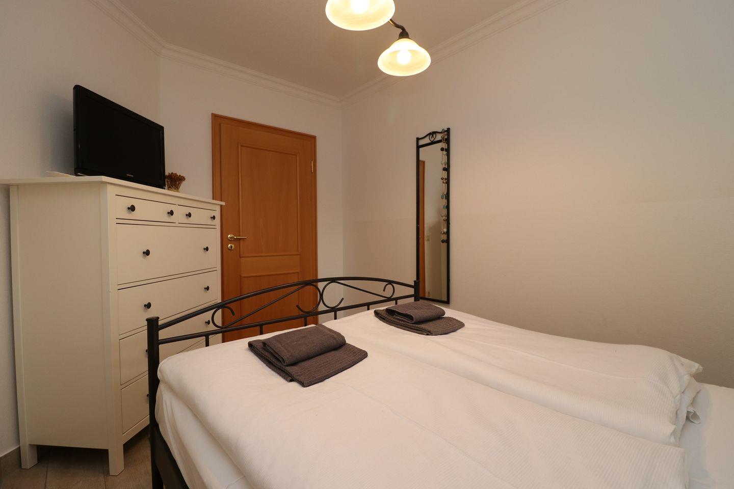 Ein geräumiges Erdgeschoss-Appartement mit einer nach Osten ausgerichteten Terrasse, das Platz für bis zu 4 Personen bietet. Es besteht aus einem Wohnzimmer mit integrierter Küchenzeile, einem Schlafzimmer mit Doppelbett und einem weiteren Schlafzimmer mit einem 1,40 x 2m Bett und TV. Das Badezimmer ist mit einer Dusche und WC ausgestattet. Haustiere und Rauchen sind nicht gestattet, jedoch gibt es WLAN für ei-nen bequemen Internetzugang während des Aufenthalts. Diesem Appartement ist der Tiefgaragenstellplatz Nr. 04 zugeordnet.