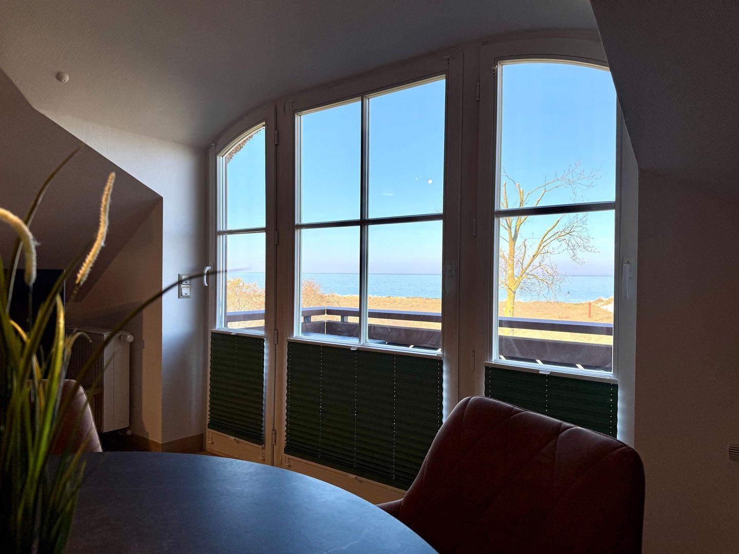 Entspannen Sie in der frisch renovierten Ferienwohnung unter Reet mit Balkon und direktem Ostseeblick.