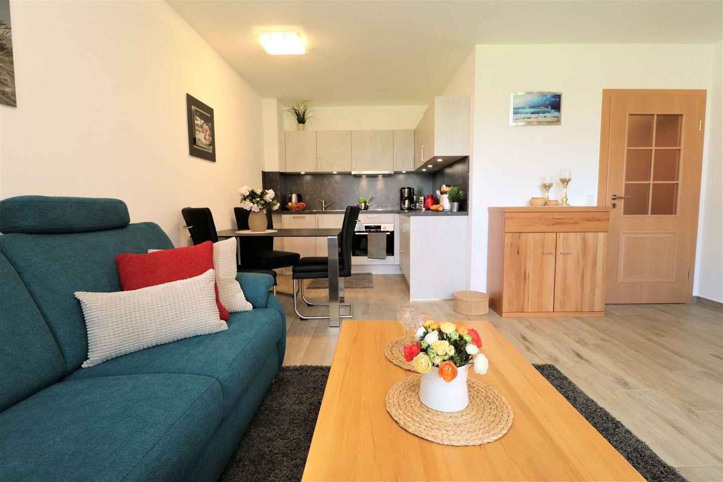 Charmante Ferienwohnung mit Terrasse, nur 50 m vom Strand im Ostseebad Wustrow entfernt.