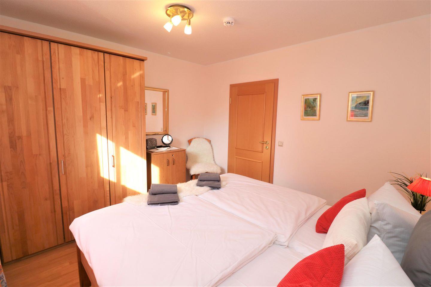 Ein gemütliches Erdgeschoss-Appartement für maximal 2 Personen mit einer Terrasse nach Süd-Westen ausgerichtet. Das Appartement verfügt über ein Wohnzimmer mit einer integrierten Küchenzeile und ein Schlafzimmer mit einem gemütlichem Doppelbett, für erholsamen Schlaf. Das Badezimmer ist mit Dusche und WC ausgestattet. Haustiere und Rauchen sind nicht gestattet, jedoch gibt es WLAN für einen bequemen Internetzugang während des Aufenthalts. Diesem Appartement wird der Tiefgaragenstellplatz Nr. 40 zugeord-net.