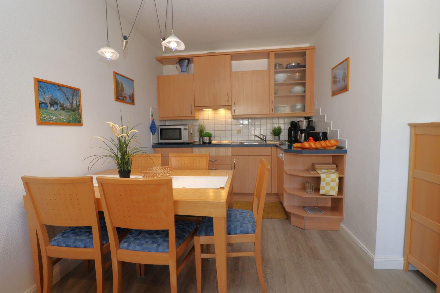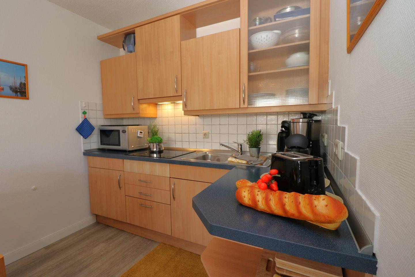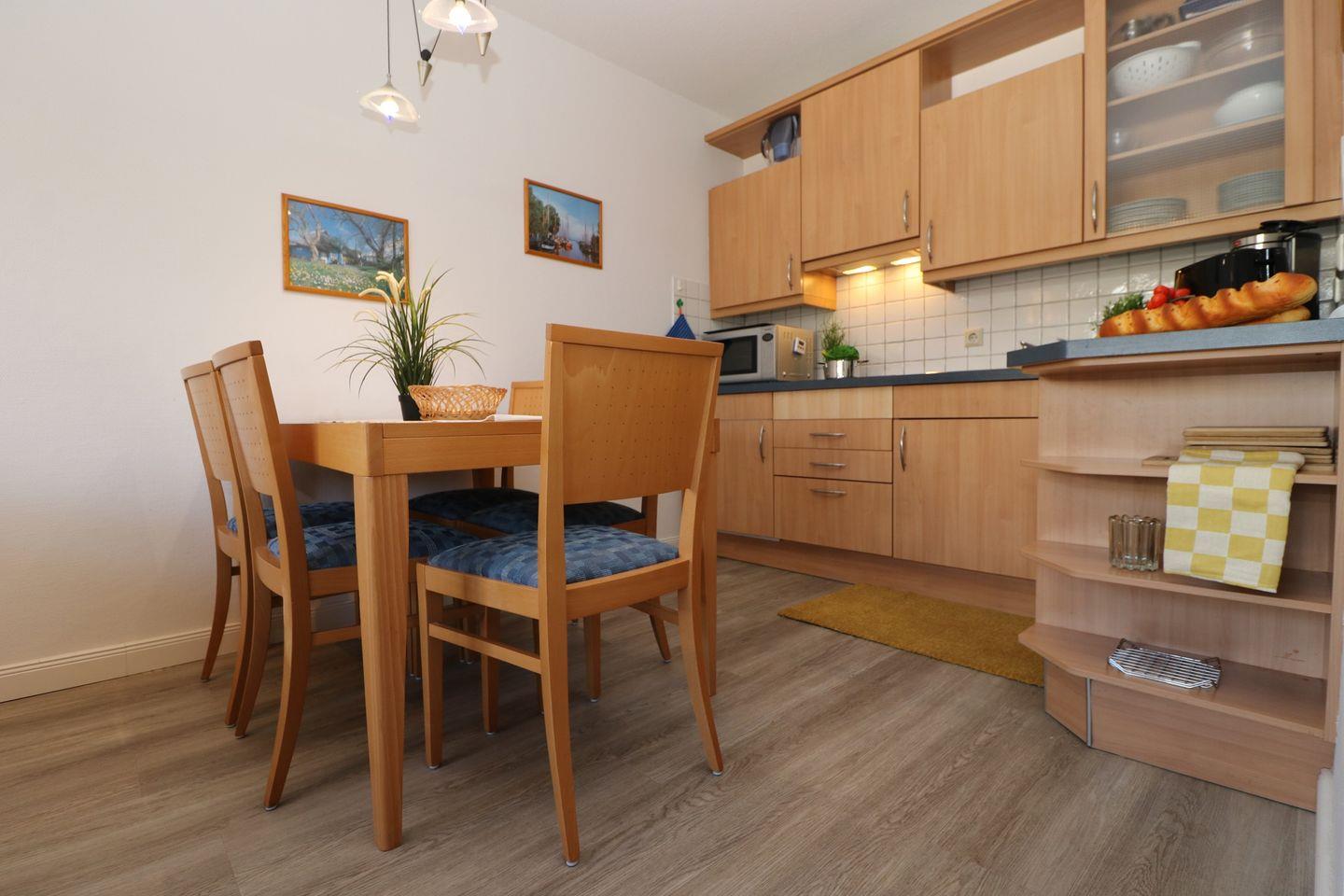Ein charmantes Appartement im Obergeschoss für maximal 4 Personen mit einem Balkon Richtung Westen und Blick auf die Ostsee. Das Appartement verfügt über ein Wohnzimmer mit einer Schlafcouch und integrierten Küchenzeile, sowie ein Schlafzimmer mit einem gemütlichem Doppelbett. Das Badezimmer ist mit Dusche, WC und einer Waschmaschine ausgestattet. Haustiere und Rauchen sind nicht gestattet, jedoch gibt es WLAN für einen bequemen Internetzugang während des Aufenthalts. In den Reisezeiten B und C kann kos-tenfrei im Dorint Hotel der SPA genutzt werden. Diesem Appartement wird der Tiefgaragenstellplatz Nr. 44 zugeordnet.