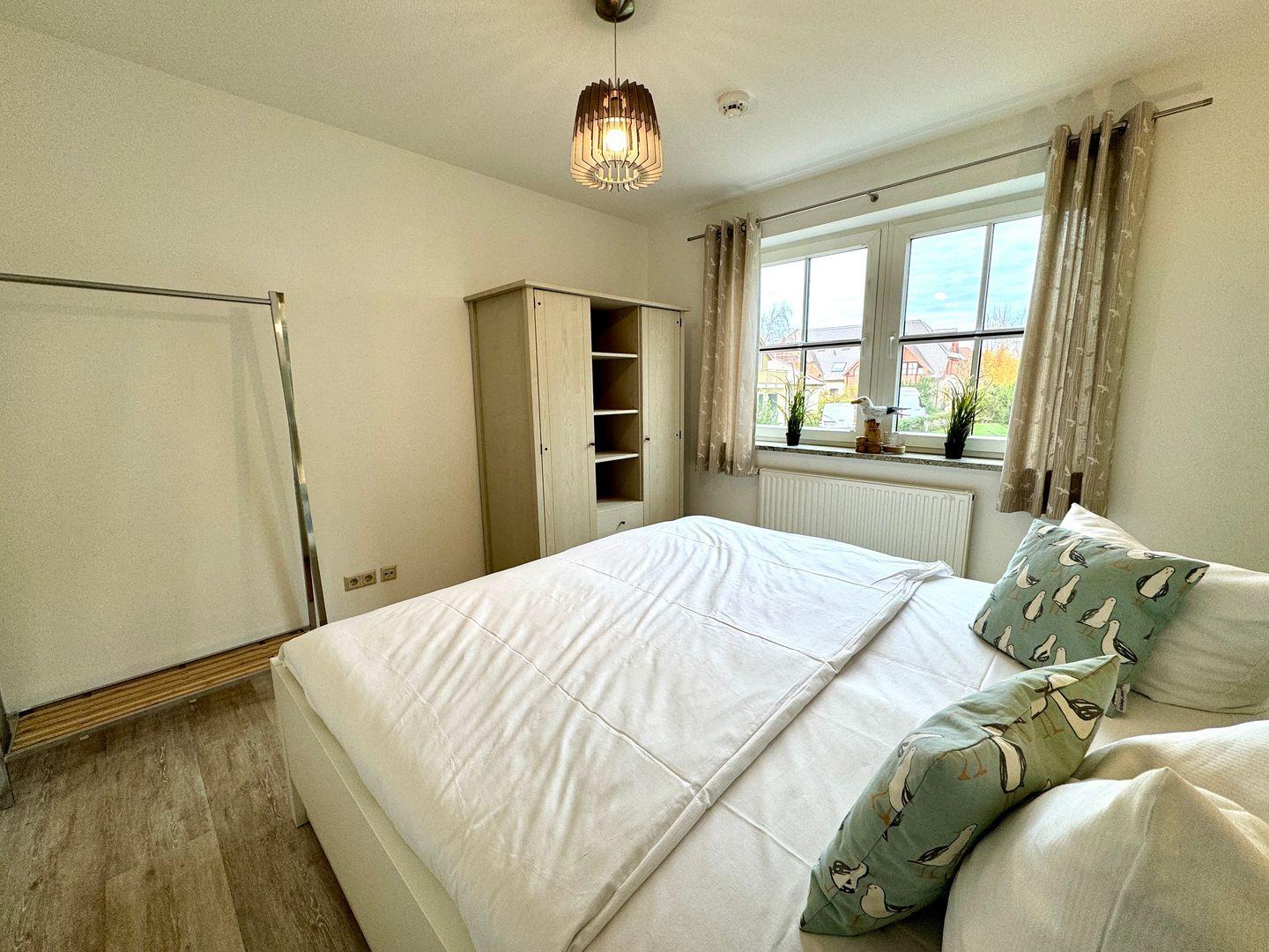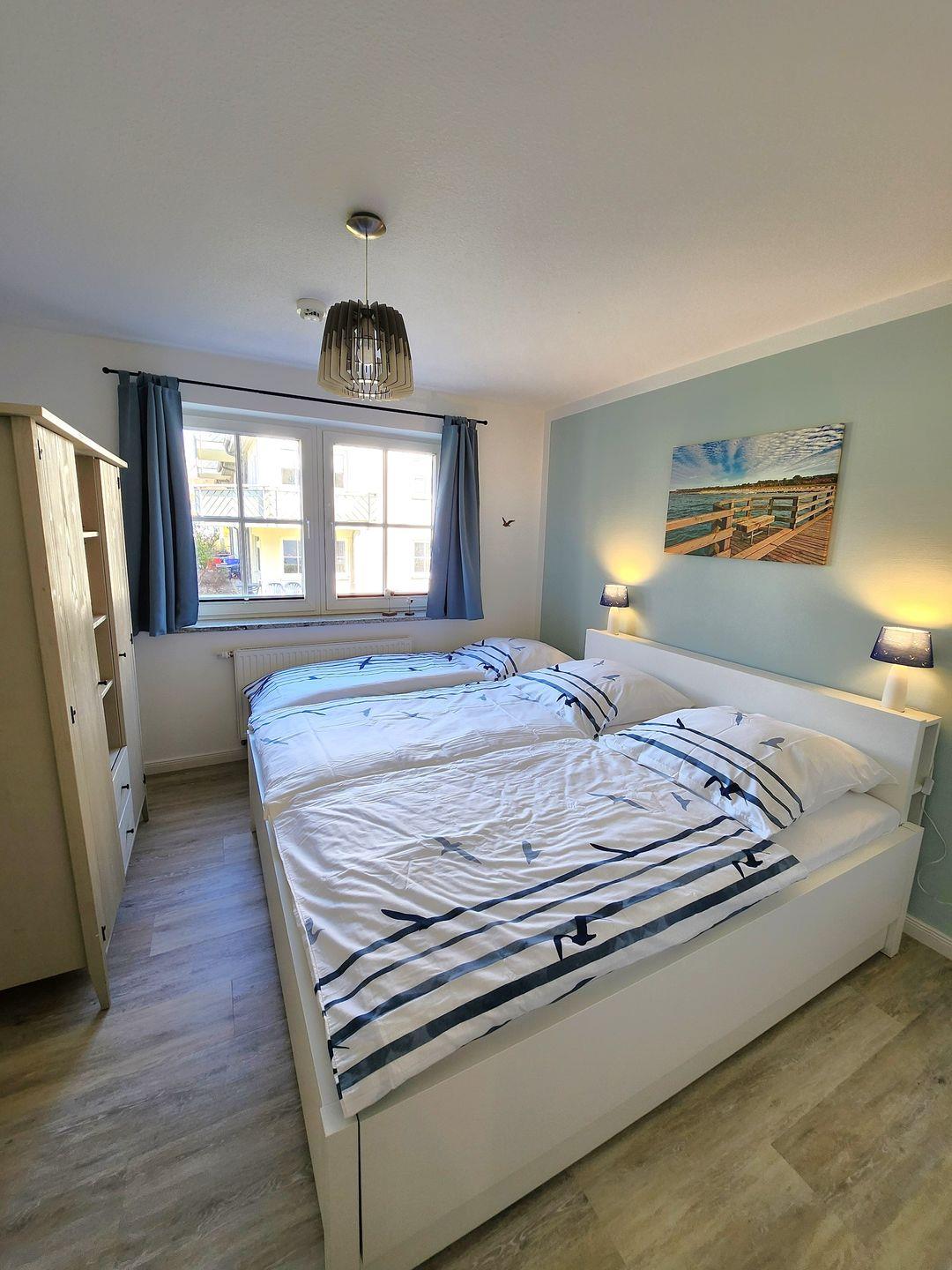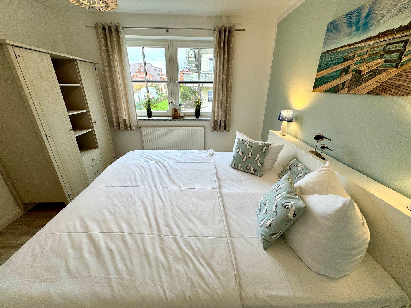 Im Schlafzimmer befindet sich ein großes Doppelbett, dass um ein 3. vollwertiges Bett zu einem Familienbett erweitert werden kann.