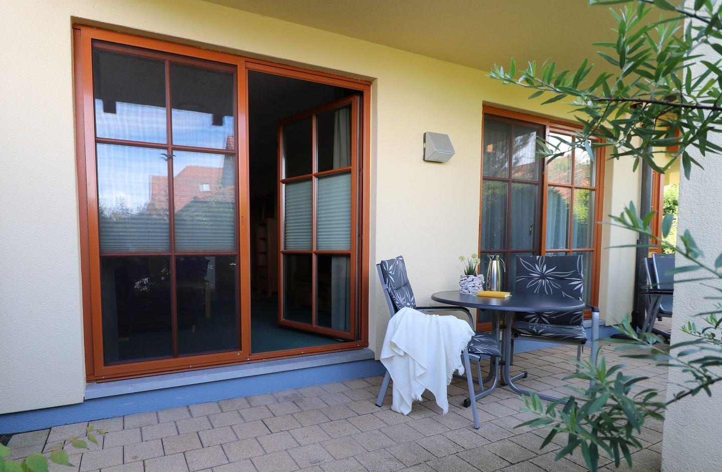 Gemütliche Ferienwohnung mit Terrasse direkt hinter der Ostseebad Wustrow Dünen, ideal für erholsame Tage am Meer.