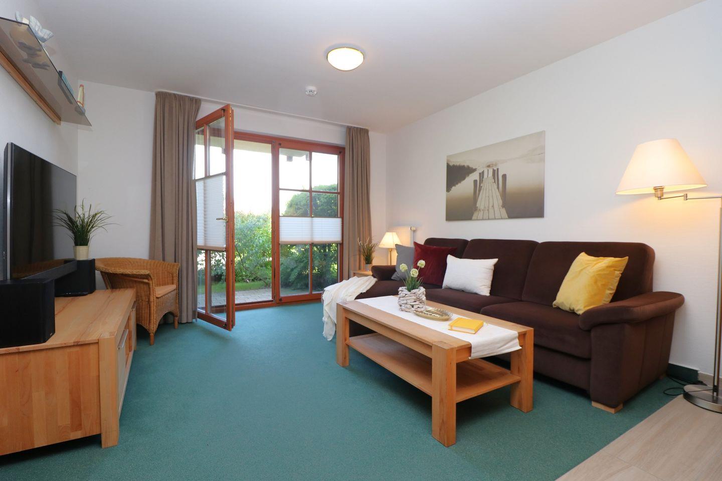Ein gemütliches Erdgeschoss-Appartement für bis zu 4 Personen mit einer Terrasse nach Westen ausgerichtet. Das Appartement Verfügt über ein Wohnzimmer mit Schlafcouch und integrierter Küchenzeile und ein Schlaf-zimmer mit einem gemütlichem Doppelbett, für erholsamen Schlaf. Das Badezimmer ist mit einer Dusche und WC ausgestattet. Haustiere sind erlaubt, jedoch ist das Rauchen nicht gestattet. WLAN ist verfügbar, um Ihren Aufenthalt zu vervollständigen. Im Gemeinschaftsraum in der Tiefgarage stehen Waschmaschine und Trockner gegen Gebühr zur Verfügung. Ideal für einen entspannten Aufenthalt! Diesem Appartement ist der Tiefgaragenstellplatz Nr. 02 zugeordnet.