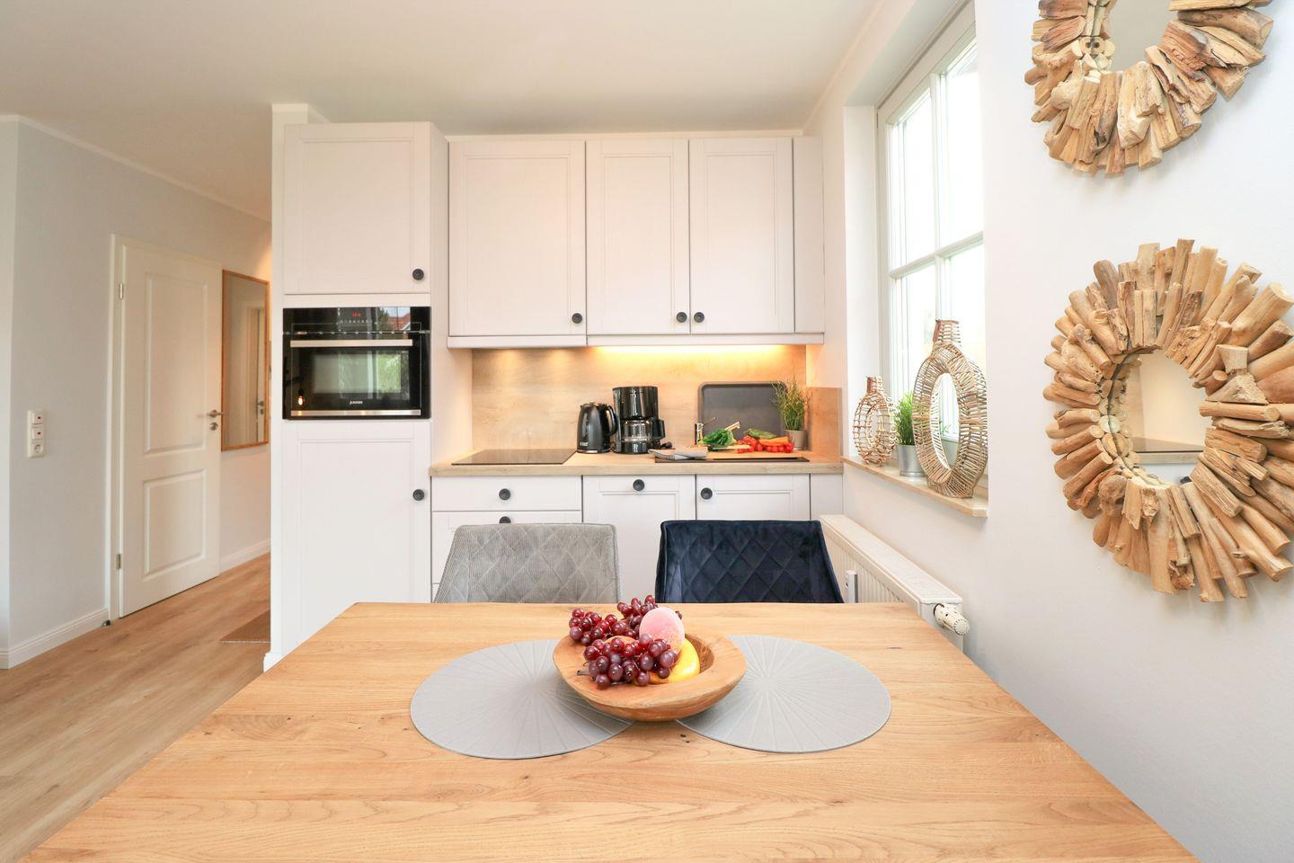 Die Wohnung umfasst ein gemütliches Schlafzimmer, ein helles Wohnzimmer mit einer Sofaecke und einem digitalen TV-Anschluss für entspannte Abende. Die offene Küche ist komplett ausgestattet mit modernen Annehmlichkeiten wie einem Cerankochfeld, Backofen, Kühlschrank mit Gefrierfach, Spülmaschine und einer Kaffeemaschine. Hier können Sie Ihre Lieblingsgerichte zubereiten und im Essbereich mit der gesamten Familie genießen.