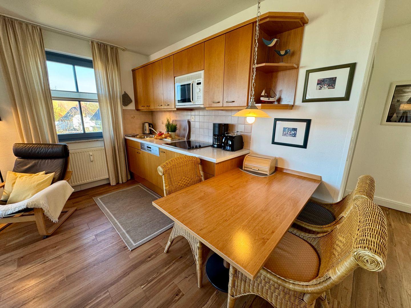 Ein charmantes Appartement im Obergeschoss für maximal 2 Personen mit einem Nord-Westbalkon und Ostseeblick. Das Appartement Verfügt über ein Wohnzimmer mit integrierter Küchenzeile und ein Schlafzimmer mit einem gemütlichem Doppelbett, für erholsamen Schlaf. Das Badezimmer ist mit einer Dusche und WC ausgestattet. Haustiere und Rauchen sind nicht gestattet, jedoch gibt es WLAN für einen bequemen Internetzugang während des Aufenthalts. Im Gemeinschaftsraum in der Tiefgarage stehen Waschmaschine und Trockner gegen Gebühr zur Verfügung. Ideal für einen entspannten Aufenthalt! Diesem Appartement ist der Außenstellplatz Nr. 31 zugeordnet.