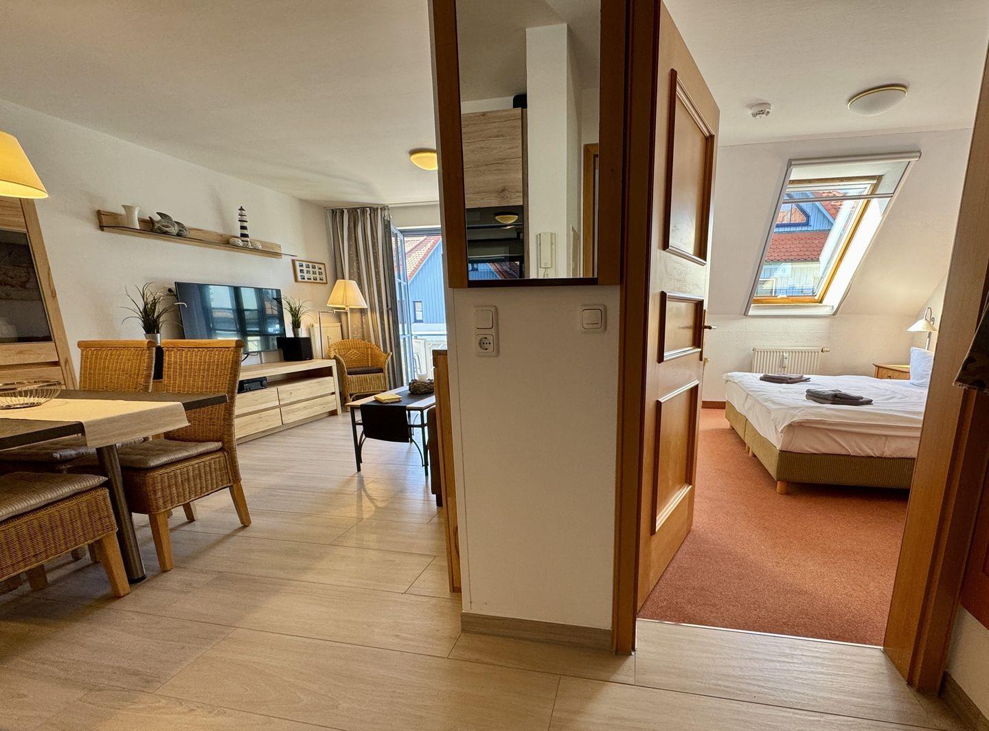 Ein gemütliches Obergeschoss-Appartement für maximal 4 Personen mit einem Südbalkon und eingeschränktem Ostseeblick. Das Appartement Verfügt über ein Wohnzimmer mit Schlafcouch und integrierter Küchenzeile und ein Schlafzimmer mit einem gemütlichem Doppelbett, für erholsamen Schlaf. Das Badezimmer ist mit einer Dusche und WC ausgestattet. Haustiere sind erlaubt, jedoch ist das Rauchen nicht gestattet. WLAN ist verfügbar, um Ihren Aufenthalt zu vervollständigen. Im Gemeinschaftsraum in der Tiefgarage stehen Waschmaschine und Trockner gegen Gebühr zur Verfügung. Ideal für einen entspannten Aufenthalt! Diesem Appartement ist der Tiefgaragenstellplatz Nr. 32 zugeordnet.
