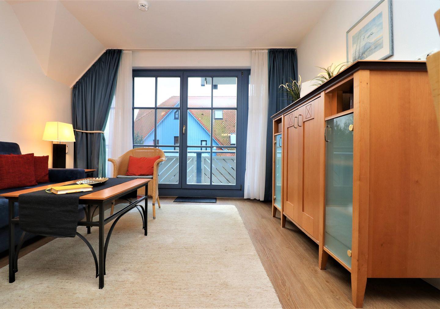 Charmantes Appartement mit Südbalkon und eingeschränktem Ostseeblick in Wustrow, ideal für einen erholsamen Urlaub zu zweit.