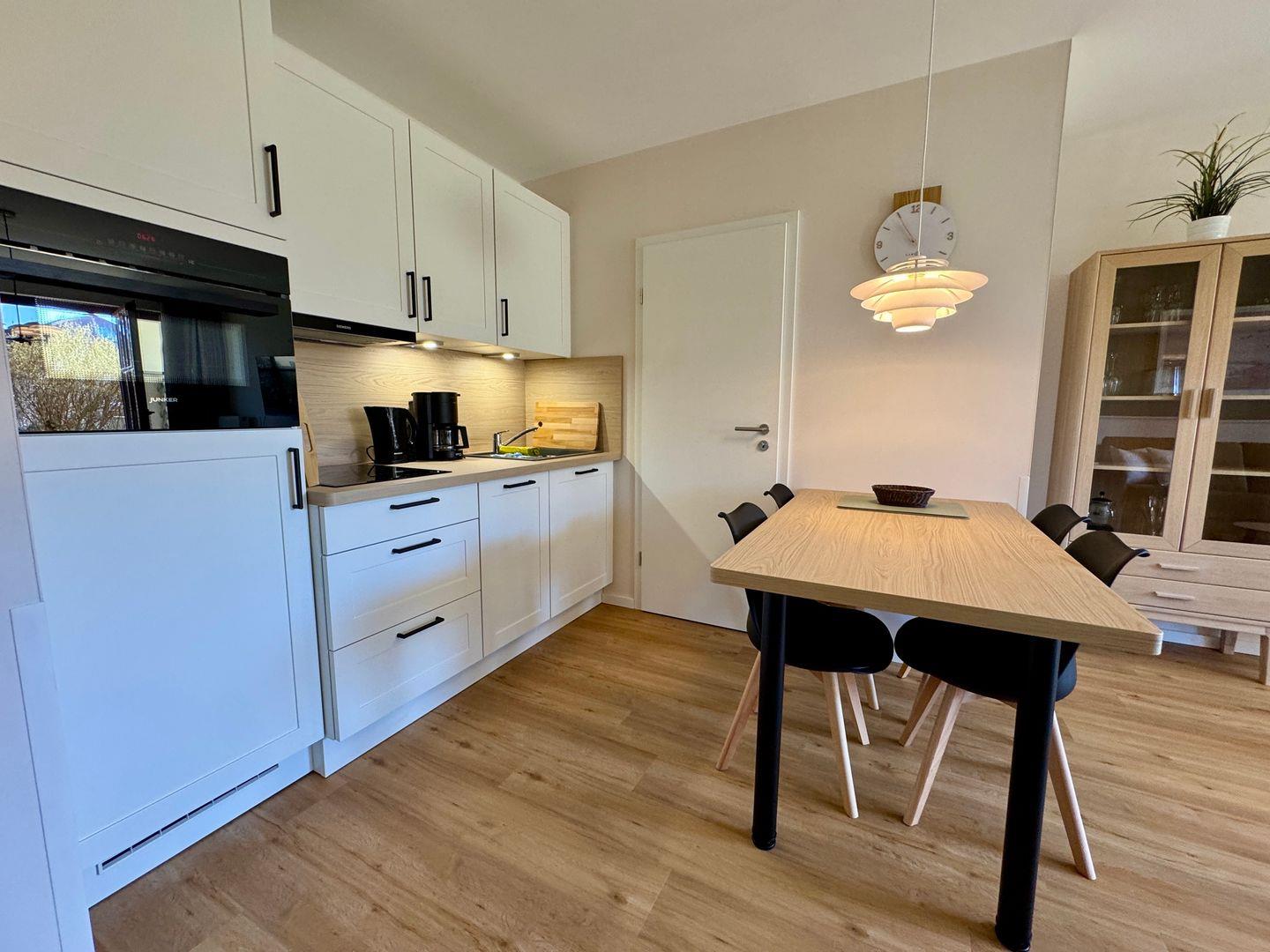 Mit 48 m² bietet die Ferienwohnung Platz für bis zu vier Gäste und ist der ideale Ort für Familien, Paare oder kleine Gruppen. Die Wohnung verfügt über ein gemütliches Schlafzimmer und ein offenes Wohn-Esszimmer, das zur geselligen Zusammenkunft einlädt. Die große Terrasse ist der perfekte Ort, um die frische Meeresbrise zu genießen und die Seele baumeln zu lassen. Gartenmöbel und ein Sonnenschirm stehen Ihnen zur Verfügung, sodass Sie auch im Außenbereich entspannen können. Die gut ausgestattete Küche lässt keine Wünsche offen und ist mit modernen Annehmlichkeiten wie einem Herd, einer Mikrowelle, einer Spülmaschine und allem notwendigen Küchenzubehör ausgestattet. Genießen Sie Ihre Mahlzeiten am Esstisch oder auf der Terrasse, während Sie den herrlichen Ausblick auf die umliegende Natur genießen. WLAN steht Ihnen in der gesamten Unterkunft kostenfrei zur Verfügung, sodass Sie auch im Urlaub stets verbunden bleiben können. Das Badezimmer ist mit einer offenen Dusche ausgestattet. Darüber hinaus genießen Sie Annehmlichkeiten wie einen Haartrockner und einen Wäscheständer, die Ihren Aufenthalt so angenehm wie möglich gestalten.