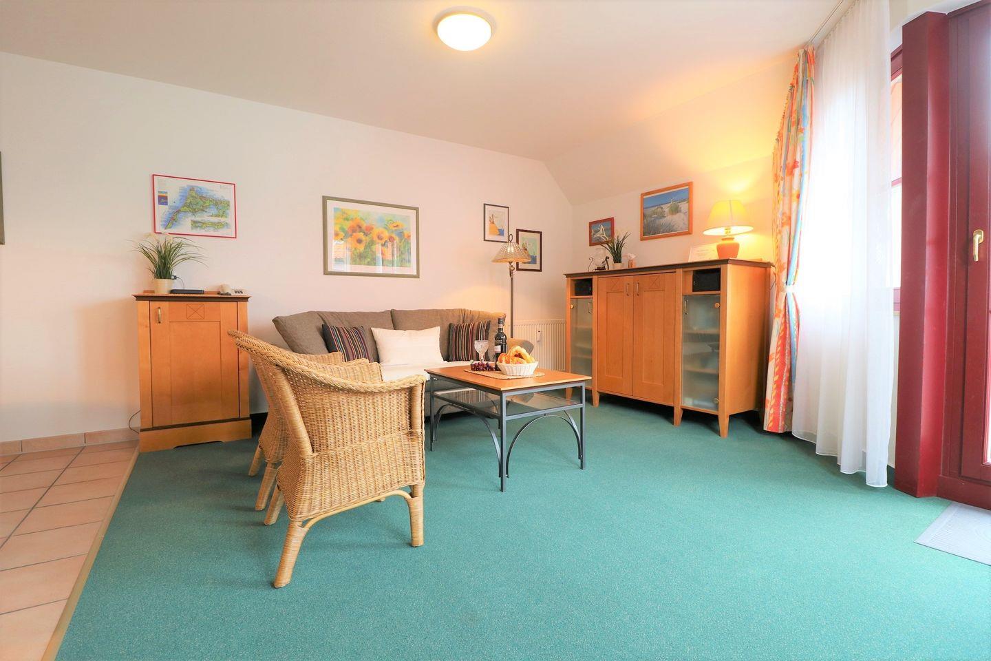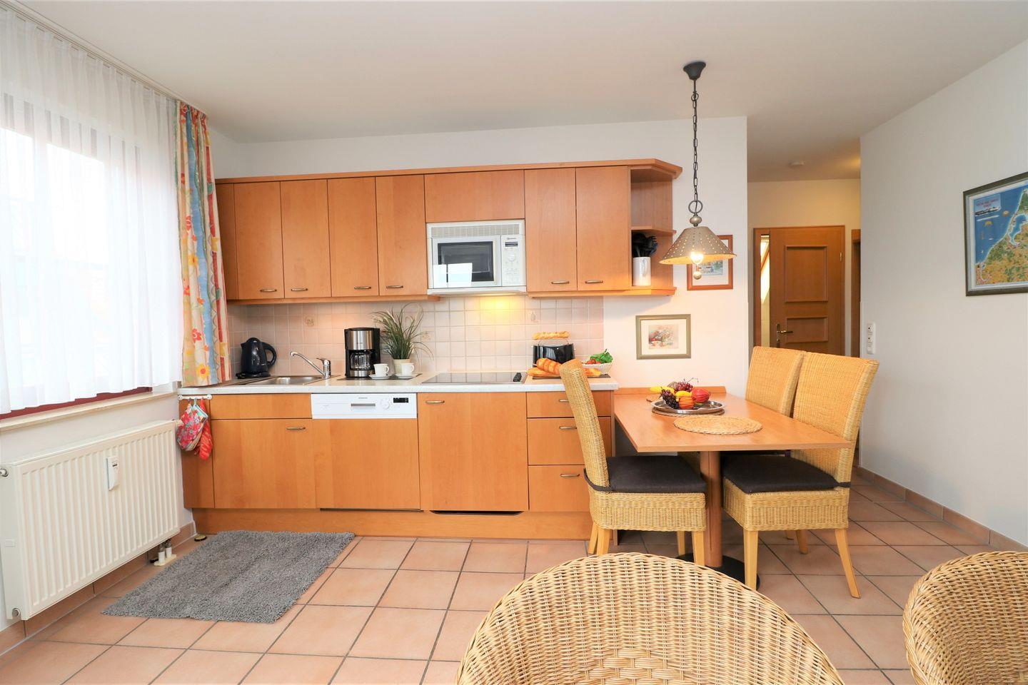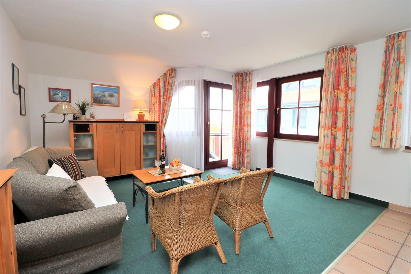 Ein gemütliches Appartement im Obergeschoss für maximal 4 Personen mit einem Westbalkon und Ostseeblick. Das Appartement verfügt über ein Wohnzimmer mit Schlafcouch und integrierter Küchenzeile und ein Schlafzimmer mit einem gemütlichem Doppelbett, für erholsamen Schlaf. Das Badezimmer ist mit einer Dusche und WC ausgestattet. Haustiere (ausschließlich Hunde) sind ab 2025 in diesem Appartement gestattet , das Rauchen hingegen ist lediglich auf dem Balkon gestattet. Für einen bequemen Internetzugang gibt es WLAN während des Aufenthalts. Im Gemeinschaftsraum in der Tiefgarage stehen Waschmaschine und Trockner gegen Gebühr zur Verfügung. Ideal für einen entspannten Aufenthalt! Diesem Appartement ist der Außenstellplatz Nr. 56 zugeordnet.