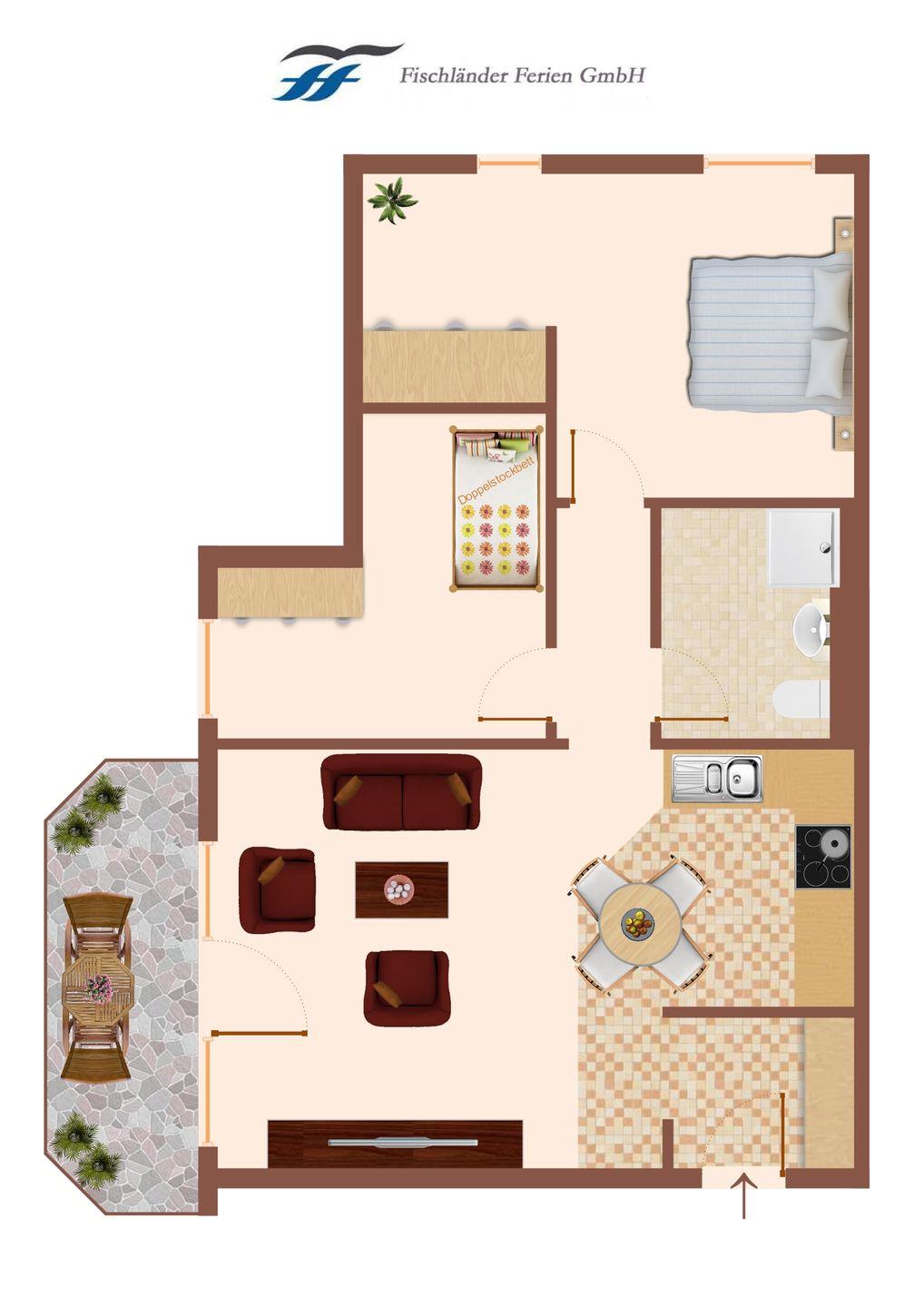 Strandnahe Ferienwohnung in Ostseebad Wustrow mit Balkon, WLAN und Pkw-Stellplatz, ideal für Familien und kleine Gruppen.