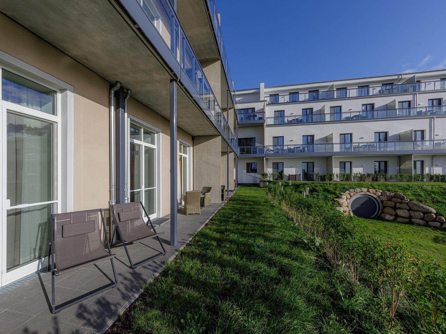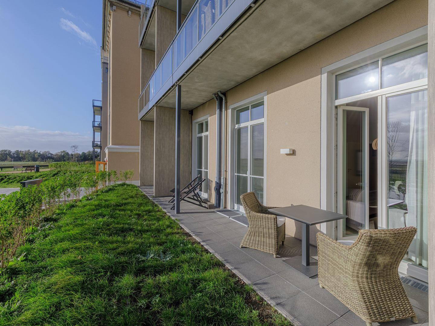 Genießen Sie traumhafte Ferien in der 5-Sterne Ferienwohnung Mohnblume mit privatem Strandkorb und Blick auf den Bodden.