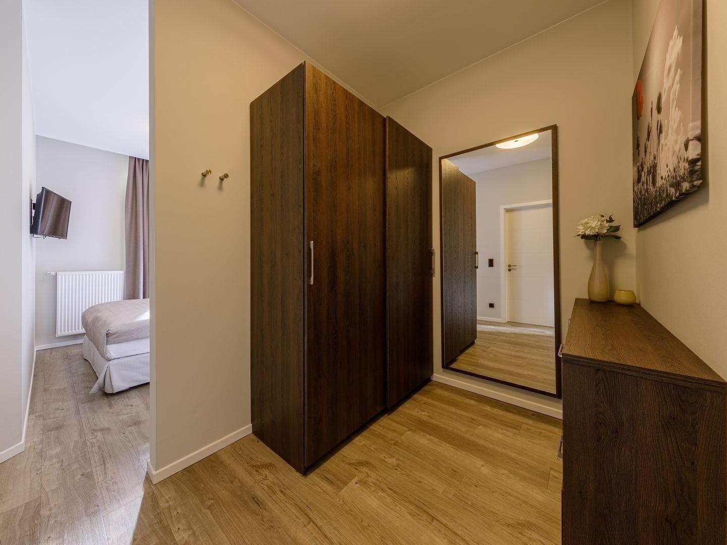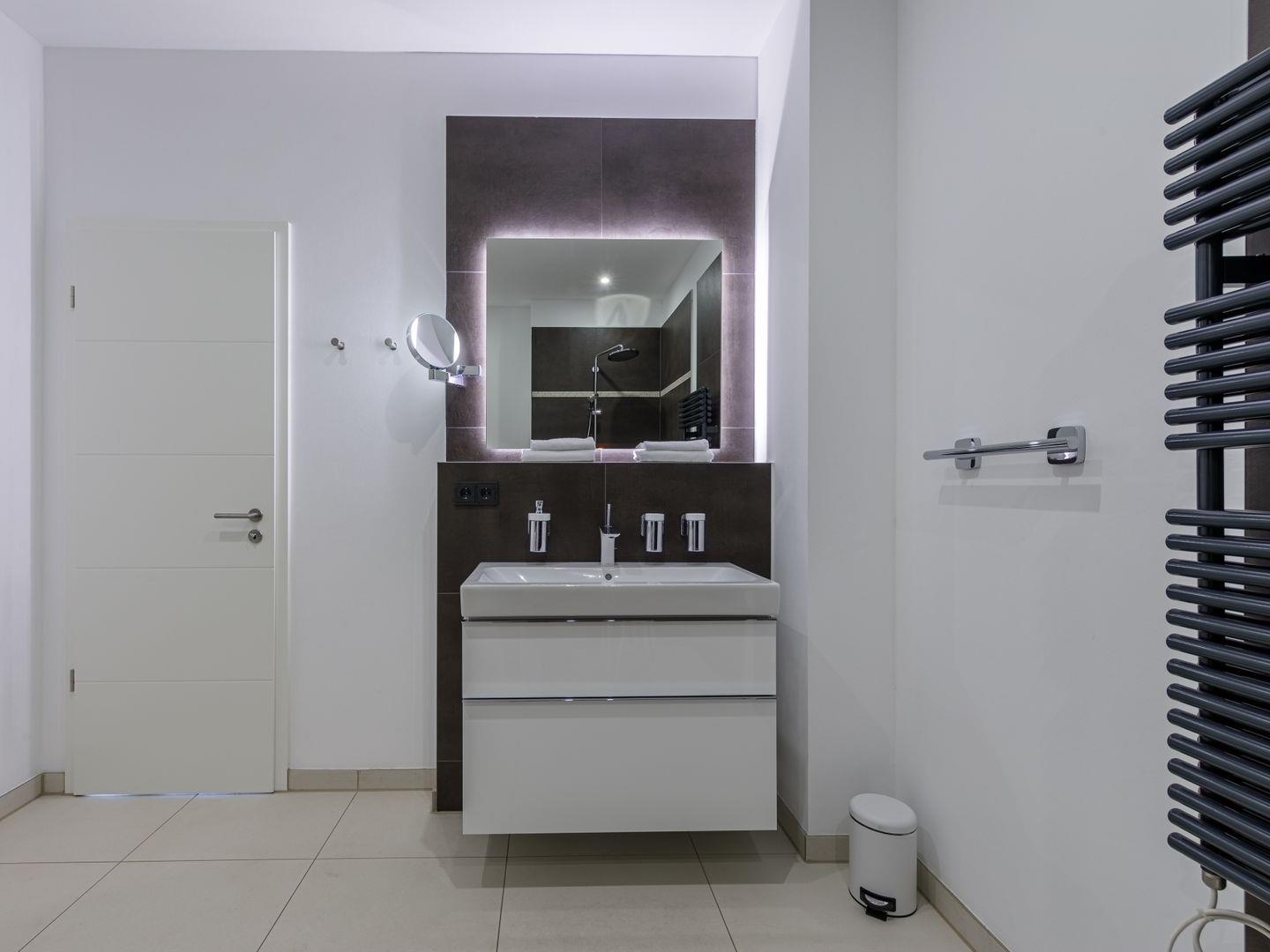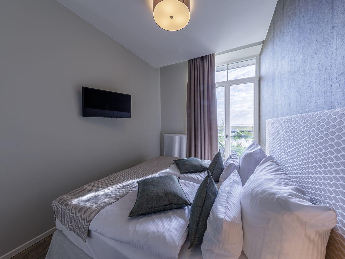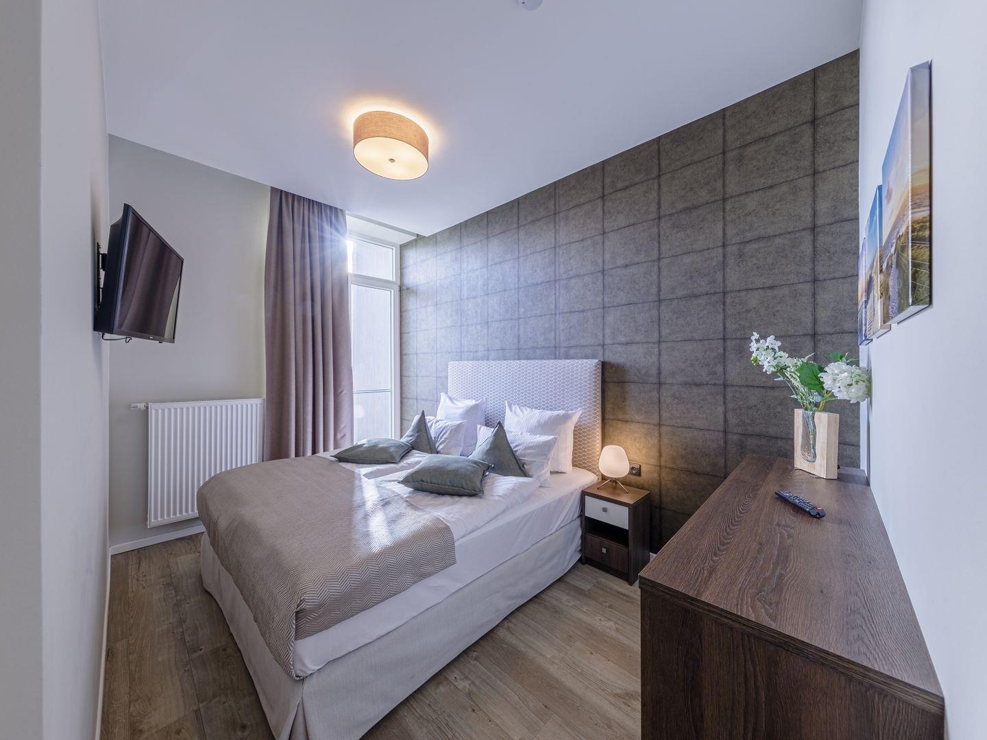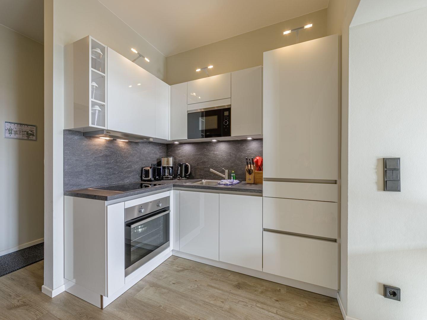 Ihr Vierbeiner ist hier ebenfalls herzlich willkommen. Erleben Sie die Geschichte der Alten Seefahrtsschule in den großzügigen Fluren. Die 5 Sterne Ferienwohnung Mohnblume verfügt über einen großzügigen Wohnbereich mit zwei bodentiefen Fenstern, die einen Blick in Richtung Bodden ermöglichen. Das Wohnzimmer bietet eine bequeme Couch die auch als Schlafcouch zu nutzen ist, 2 Lounge-Chair-Sessel, ein Couchtisch, eine Bluetooth-Anlage, ein Flachbild-TV und kostenfreies WLAN. Die möblierte Terrasse lädt bei gutem Wetter dazu ein, das Ostseeklima zu genießen. Das moderne Schlafzimmer bietet ein Boxspringbett mit Nachttischen und Nachttischlampen zusätzlich gibt es einen 2. Flachbild-TV an der Wand. Die Terrasse ist auch vom Schlafzimmer aus zugänglich. Ein Ankleidezimmer führt zum Badezimmer mit ebenerdiger Dusche, großem Waschtisch, Handtuchhalter, Föhn und Kosmetikspiegel. Ein Waschtrockner steht kostenlos zur Verfügung. Die offene, vollausgestattete NOLTE-Einbauküche ermöglicht kulinarische Genüsse mit einem Induktionsherd, Backofen, Geschirrspüler und Kühlschrank mit Gefrierfach. Ein großer Esstisch im Wohnzimmer eignet sich perfekt für gemeinsame Mahlzeiten.