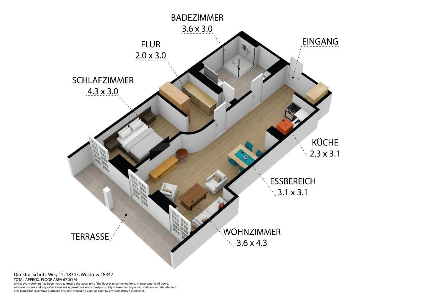 Das Appartement Mohnblume bietet Platz für 2 bis 4 Personen und verspricht eine traumhafte Zeit zwischen Ostsee und Bodden auf dem Gelände der Alten Seefahrtschule.