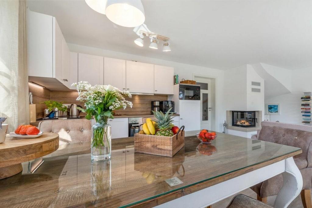 Haus Küstenkind in Zingst bietet lichtdurchfluteten Wohnbereich und Sauna für entspannte Ostseeferien.