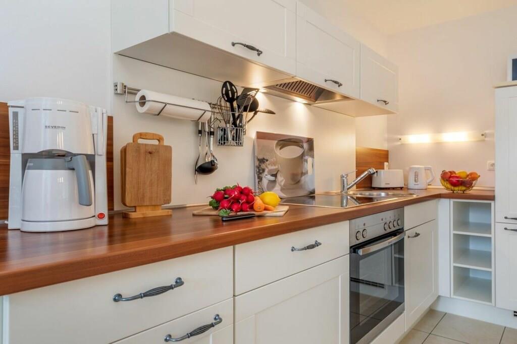 Die Ferienwohnung Arielle in Zingst bietet komfortablen Urlaub mit Terrasse, Kaminofen und Fahrradabstellraum.