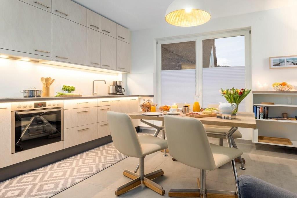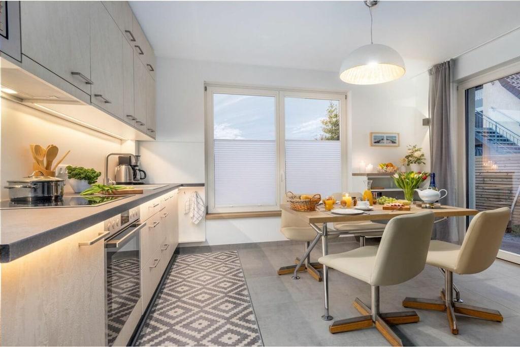 Moderne Ferienwohnung im Erdgeschoss mit Terrasse, Gartenmöbeln und Waschmaschine in Ostseebad Zingst.