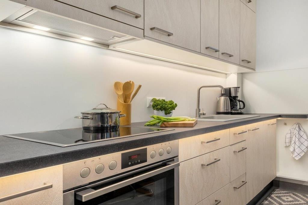 , , Wohnzimmer(, Schlafcouch 1 Pers., TV), Küche(, Esstisch, Kochplatte, Wasserkocher, Toaster, Kaffeemaschine, Backofen, Mikrowelle, Spülmaschine, Kühlschrank, Tiefkühlschrank), Schlafzimmer(Doppelbett), Badezimmer(, Dusche, Waschbecken, Föhn), Internet, Internet, Trockner, Waschmaschine, Heizung, Terrasse(Gartenmöbel), Gartenmöbel, Parkplatz, Bügelbrett, Bügeleisen, Trockenschrank