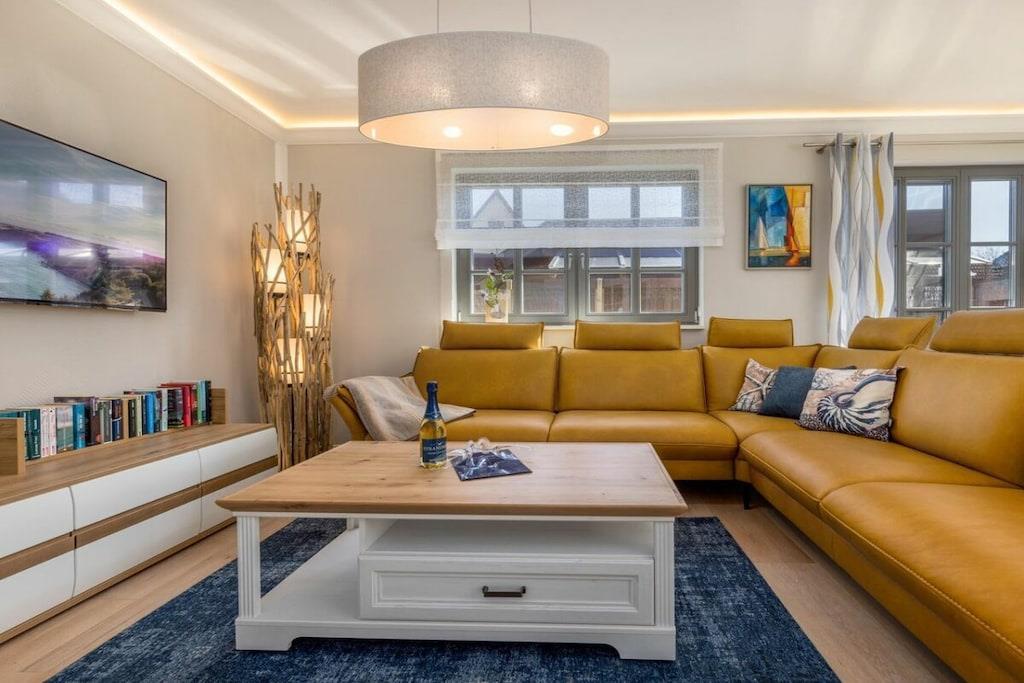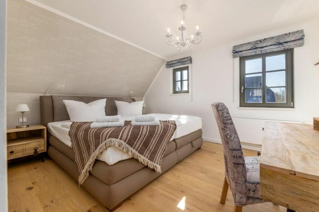 Der Garten und die große Terrasse laden zu schönen Sonnenstunden und gemütlichen Grillabenden ein. In dem großzügigen Feriendomizil, mit drei separaten Schlafzimmern, können sich bis zu 6 Gäste entspannen. Die hochwertige und moderne Einrichtung verspricht Ferien mit höchstem Komfort. Zu den vielen Annehmlichkeiten, die Ihnen hier geboten werden, gehören unter anderem vier LCD-TV, die Terrasse mit Gartenmöbeln, zwei Schlafzimmer mit Doppelbett , ein Schlafzimmer mit zwei Einzelbetten und zwei stilvoll geräumige Bäder mit viel Ablagefläche. Das Haus verfügt über einen Internetanschluss mit WLAN, sowie zwei Parkplätze. Für Fahrräder ist auf dem Außengelände ein abschließbarer Schuppen vorhanden.