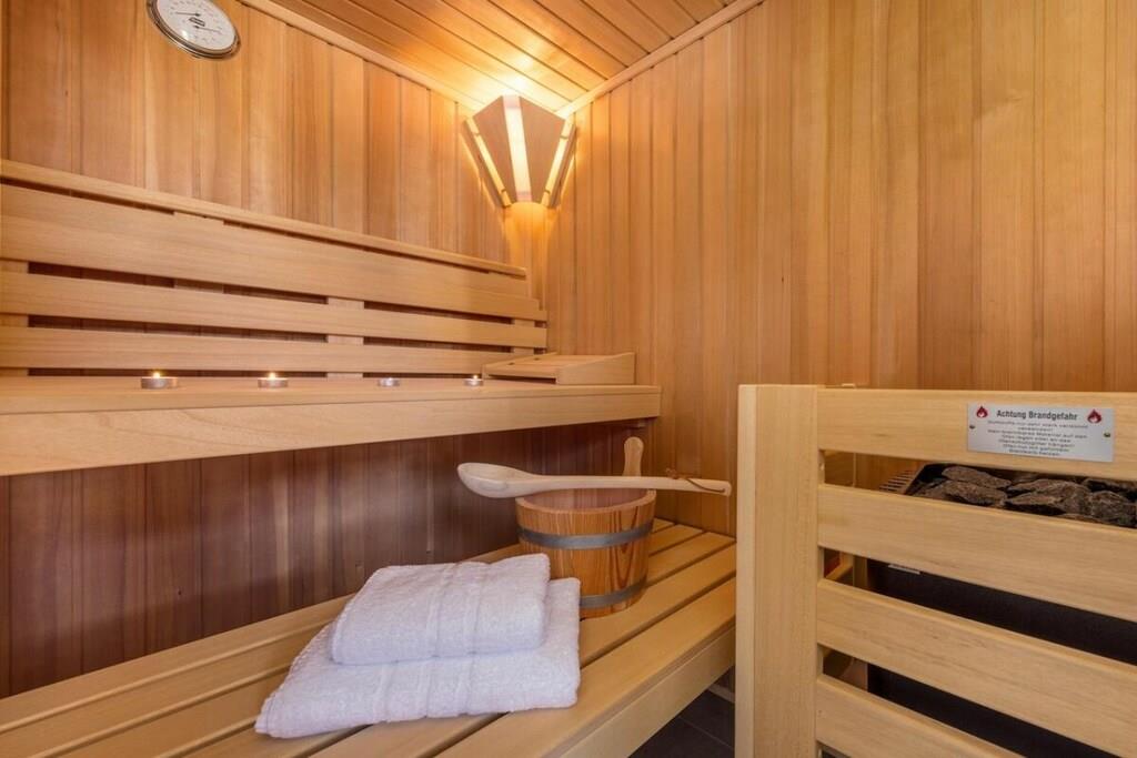 , , , Wohnzimmer(, , TV, TV, Kaminofen, Radio, CD-Spieler, Heizung), Küche(Esstisch, Kochplatte, Wasserkocher, Toaster, Kaffeemaschine, Backofen, Mikrowelle, Spülmaschine, Kühlschrank, Heizung), Schlafzimmer(, Einzelbett, Einzelbett, Doppelbett, Doppelbett, TV, Heizung), Schlafzimmer(, Einzelbett, Einzelbett, Doppelbett, Doppelbett, TV, Heizung), Schlafzimmer(, Einzelbett, Einzelbett, Doppelbett, Doppelbett, TV, Heizung), Badezimmer(, , Toilette, Dusche, Waschbecken, Föhn), Badezimmer(, , Toilette, Dusche, Waschbecken, Föhn), Ruheraum(Sauna), Internet, Internet, Waschmaschine, Heizung, Terrasse(, Gartenmöbel), Garten, Parkplatz, Bügelbrett, Bügeleisen, Trockenschrank
