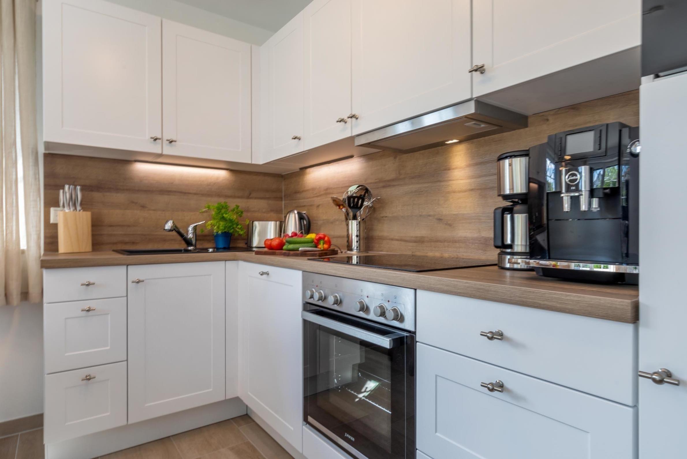 Im Ferienhaus Küstenkind erwartet Gäste eine lichtdurchflutete Wohlfühloase. Der großzügige Wohnbereich bietet eine offene Küche, die mit einem Elektro-/Gasherd, Backofen, Geschirrspüler und Kaffeemaschine ausgestattet ist. Der Esstisch für bis zu 8 Personen und die gemütliche Couch mit Fußbodenheizung schaffen eine einladende Atmosphäre. Ein Kamin sorgt für Wärme und Gemütlichkeit.
