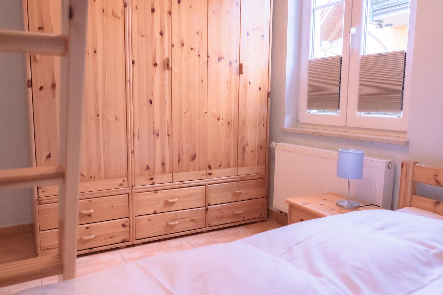 Im Kinderzimmer steht ein Etagenbett, bei diesem ist die untere Liegefläche 1,40 m breit.