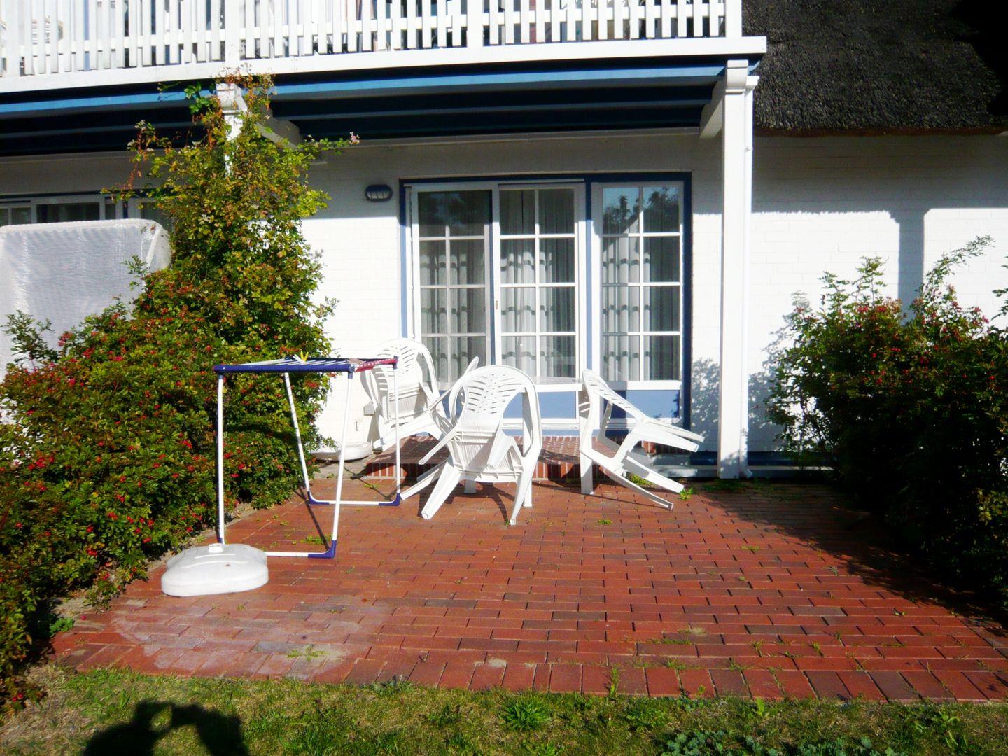 Die reetgedeckte Ferienanlage liegt etwas außerhalb, direkt hinter dem Ostseedeich. Die 60 qm große Wohnung wird für max. 3 Personen vermietet. Der Wohn-Essbereich mit der Küchenecke und ein Schlafzimmer mit einem Einzelbett befinden sich im Erdgeschoss. Ein weiteres Schlafzimmer mit zwei getrennt stehenden Betten und das Bad mit Dusche und WC sind im Untergeschoss. Die Westterrasse lädt zum Verweilen ein.