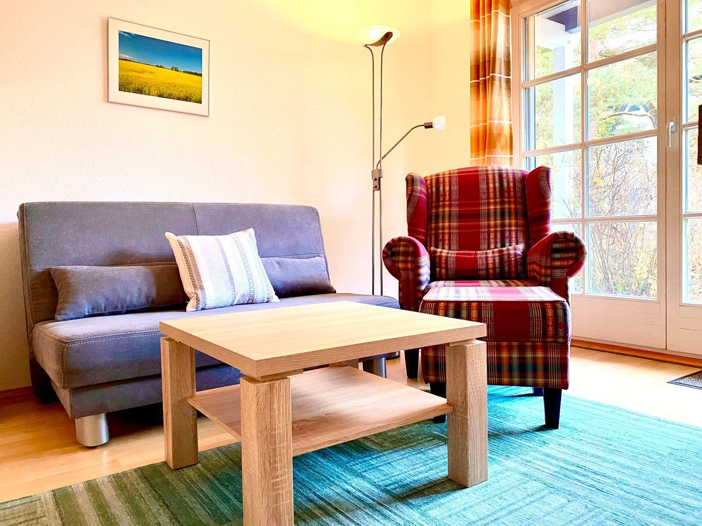 Gemütliche 41qm Wohnung mit Westterrasse nahe Ostseedeich in Zingst, ideal für 2 Personen zum Entspannen und Aktivsein.
