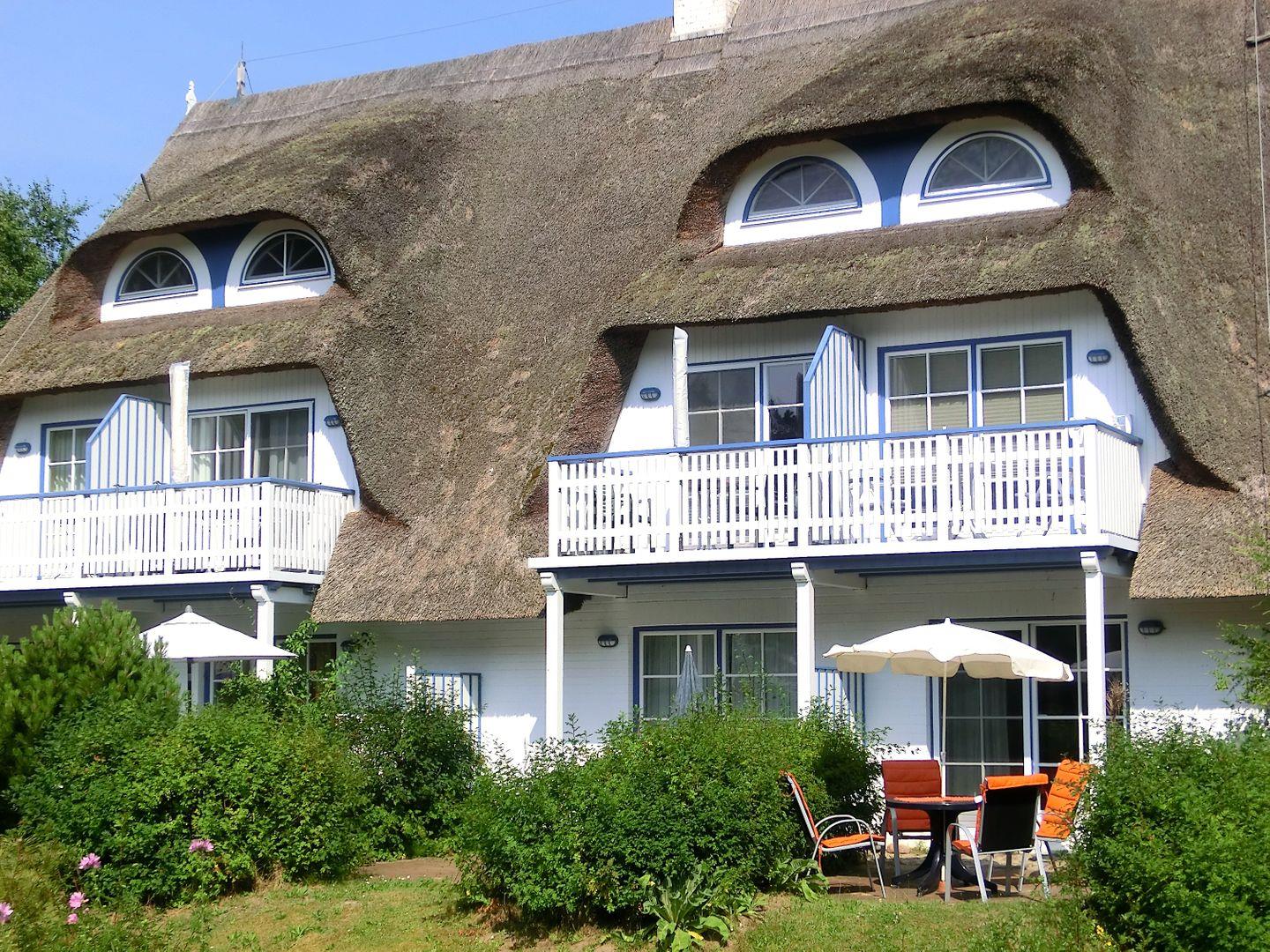 Die reetgedeckte Ferienanlage liegt etwas außerhalb von Zingst, direkt hinter dem Ostseedeich.