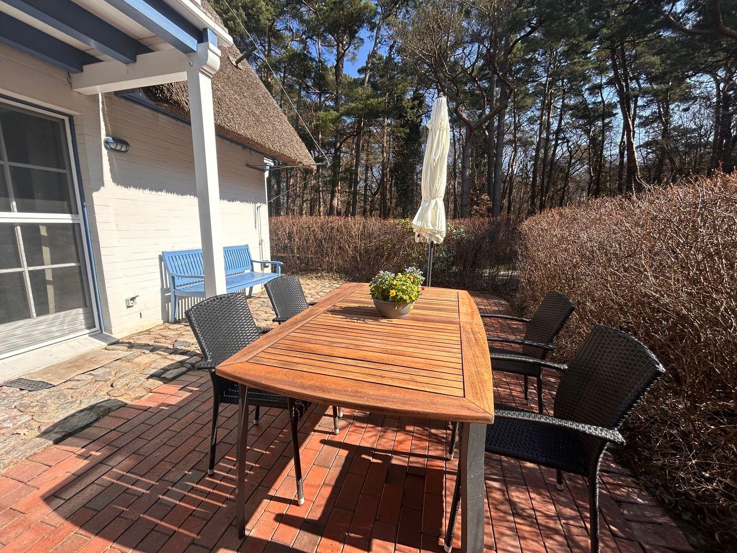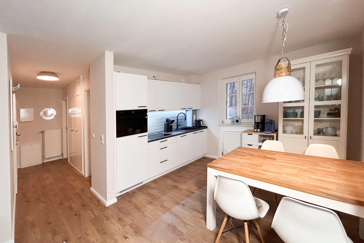 Auch Genießer kommen in der gut ausgestatteten Küche auf ihre Kosten Starten Sie Ihren Tag ganz nach Wunsch – mit frisch gebrühtem Filterkaffee oder bequem per Kapselmaschine (Tassimo). Die große, sonnige Südterrasse ist ideal für ein ausgedehntes Frühstück im Freien oder einen entspannten Ausklang des Tages.