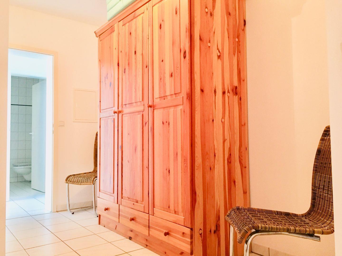 Die 93 m² große Erdgeschoßwohnung wird für bis zu 4 Personen vermietet. Der große Wohnraum ist mit einem Kaminofen ausgestattet, von hier gelangen Sie auch auf die Westterrasse. Die Küche und die Essecke schließen an den Wohnbereich an. Es stehen zwei Schlafzimmer, eines mit einem Doppelbett und eines mit zwei einzelnen Betten zur Verfügung, im Flur sorgen zwei Kleiderschränke für Stauraum. Das Badezimmer ist mit Dusche und Badewanne ausgestattet, zusätzlich gibt es noch ein Gäste WC.