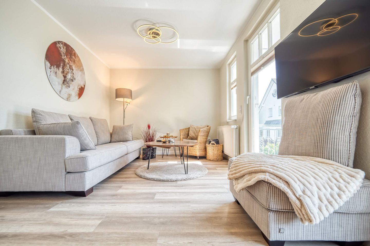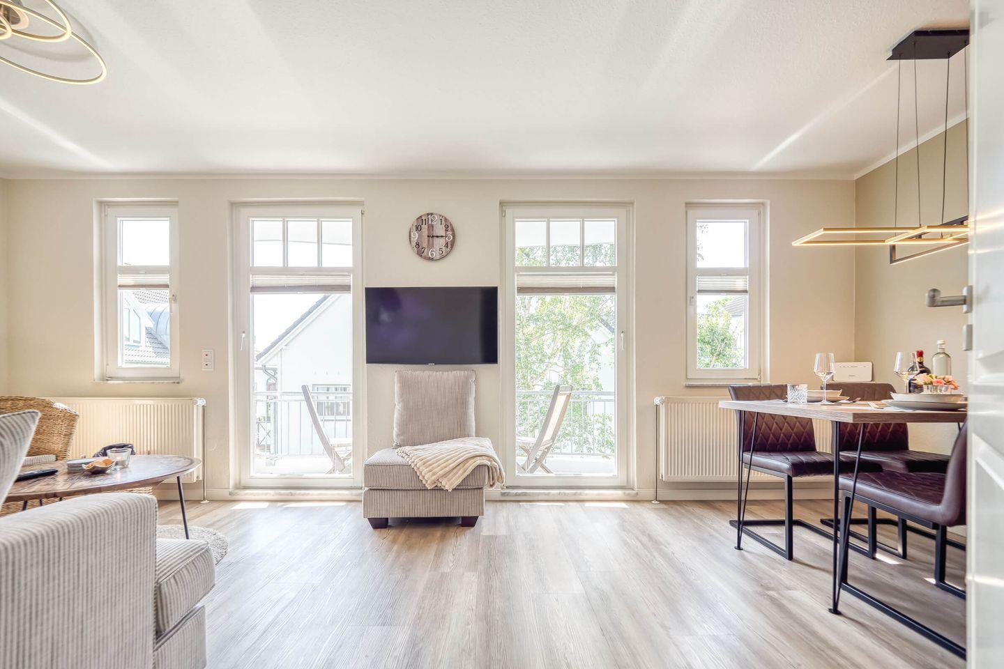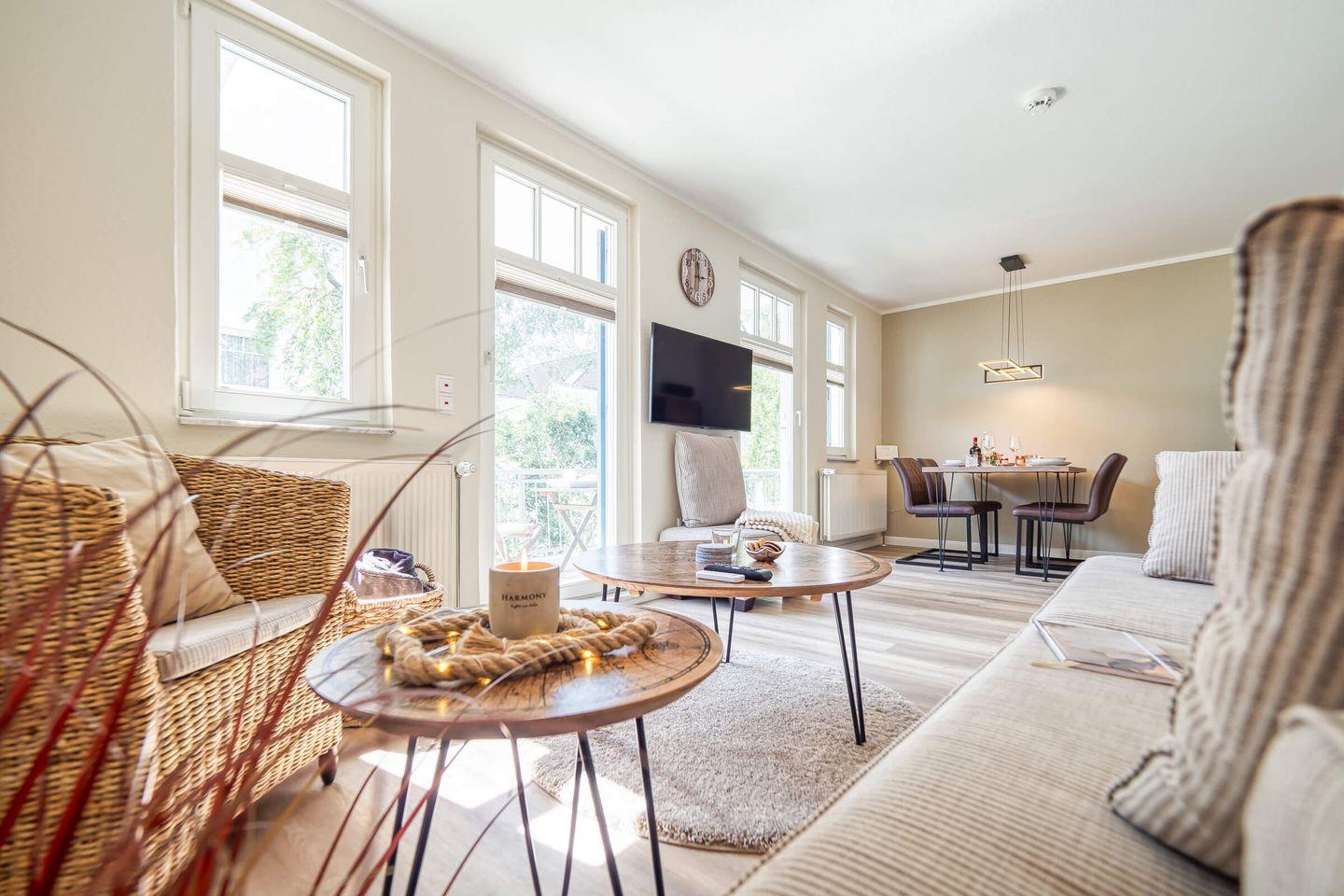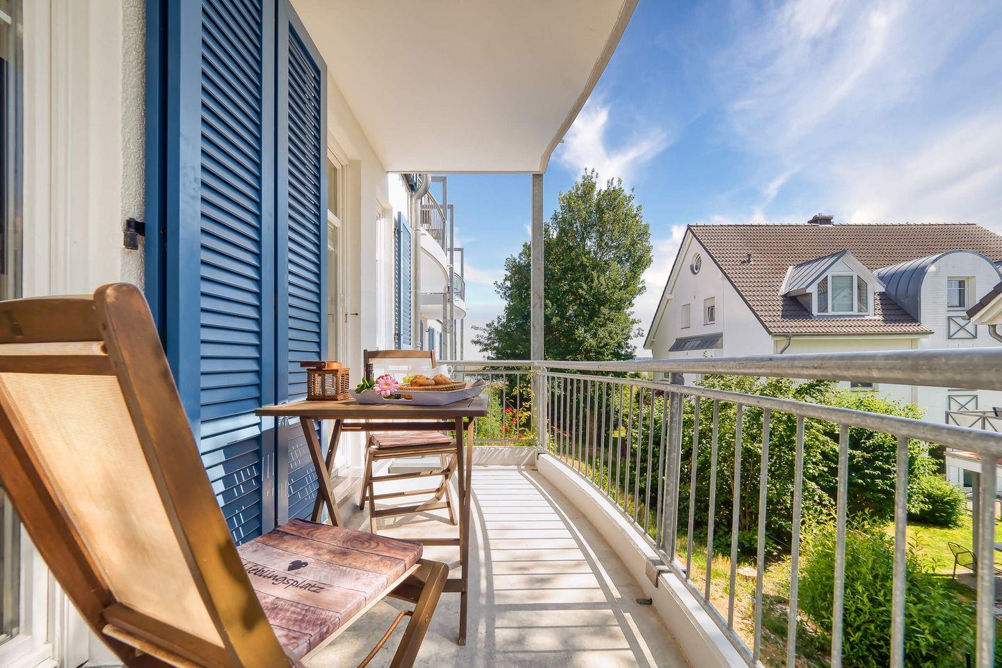 Gemütliche 50 qm Wohnung mit Balkon und herrlichem Boddenblick in Zingst, ideal für erholsame Tage zu zweit.
