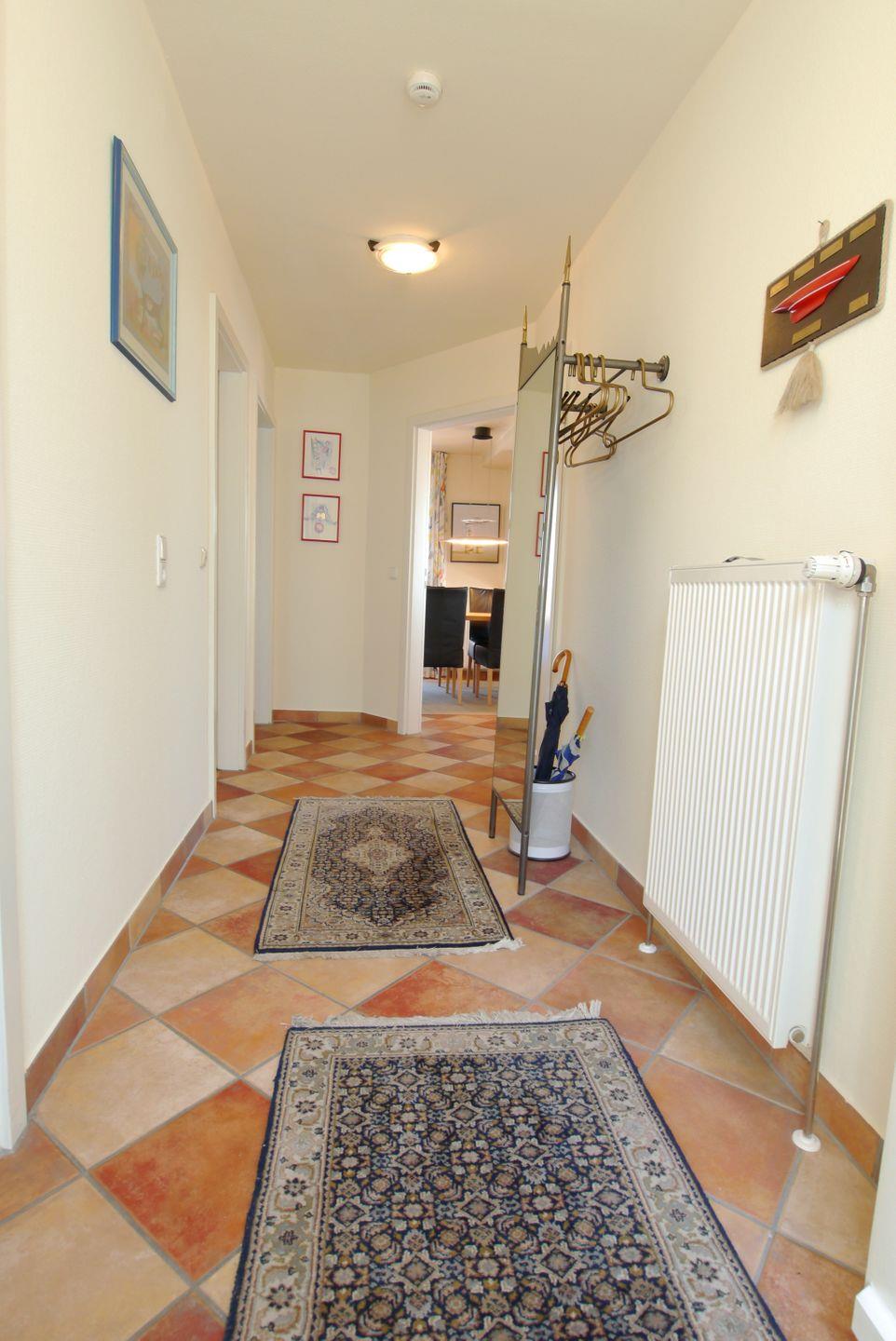 Die 97qm große Eckwohnung befindet sich im 2.OG und wird für max 4 Personen vermietet. Auf einer Ebene befinden sich Küche, das Bad mit begehbarer Dusche und WC, 1 Schlafzimmer mit Doppelbett und Zugang zum Ostbalkon sowie der grosse Wohnraum mit einem Süd-Ostbalkon. Auf der oberen Ebene befindet sich ein grosses Wohnschlafzimmer mit 2 Einzelbetten, ein Bad mit begehbarer Dusche und WC, einem 2.TV-Gerät und ein Balkon zur Westseite. Ein Tiefgaragenplatz gehört zur Wohnung dazu. Münzwaschmaschinen finden Sie im Keller des Hauses.