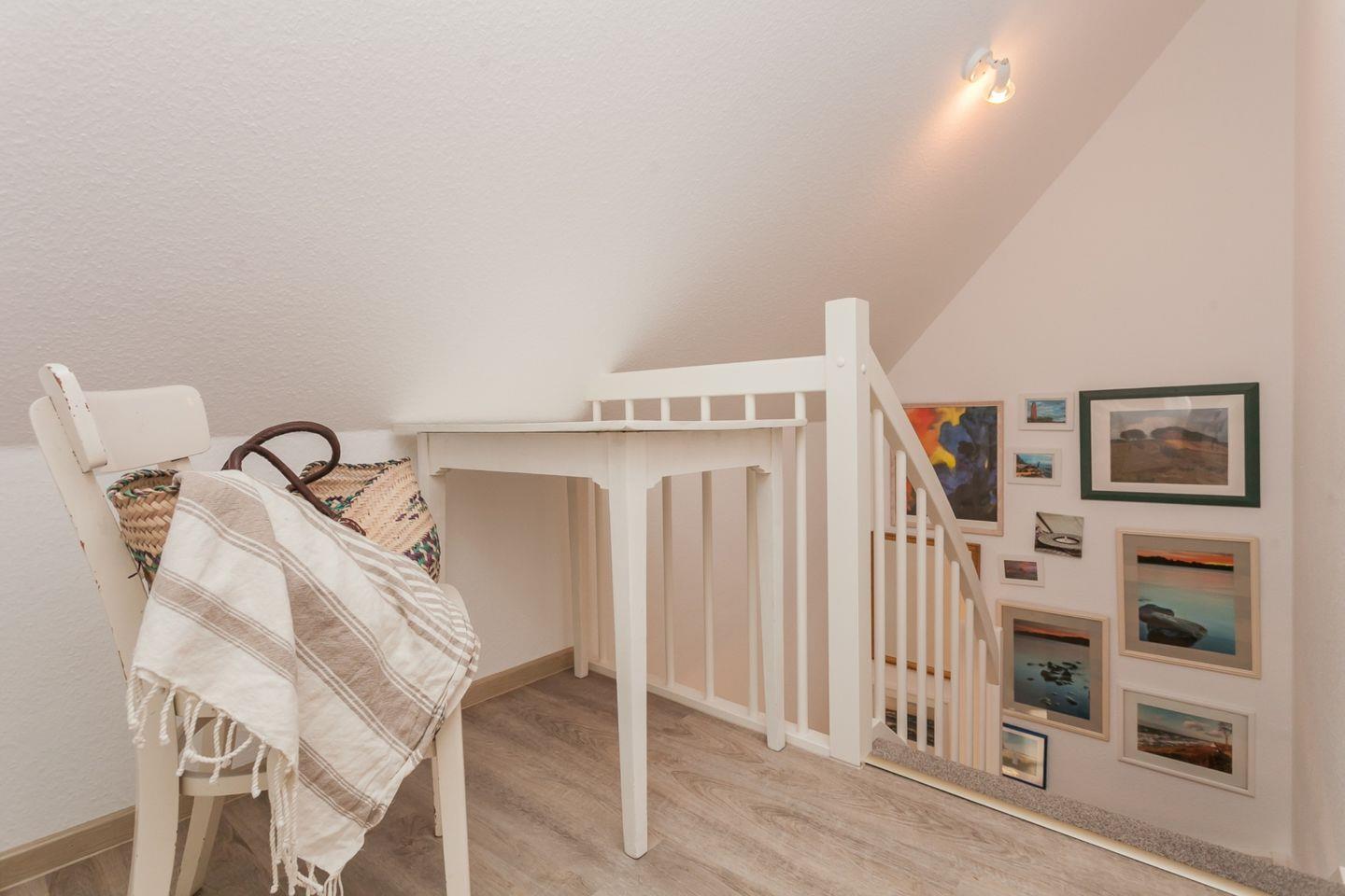 Die 75qm große Doppelhaushälfte wird für bis zu vier Personen vermietet. Einkaufsmöglichkeiten, Strand und Ortszentrum sind in wenigen Minuten zu Fuß erreichbar. Wohn-Essbereich mit Westterrasse, kleine Küche und ein Gäste-WC befinden sich im Erdgeschoss. In der oberen Etage sind zwei Schlafzimmer, eines mit Ehebett und ein weiteres mit zwei Einzelbetten. Eine Waschmaschine sowie ein Tresor stehen Ihnen ebenfalls zur Verfügung. Ein großer Garten sorgt für viel Auslauf und ruhige Plätze. Ein Spielplatz für die Kinder befindet sich neben dem Grundstück.