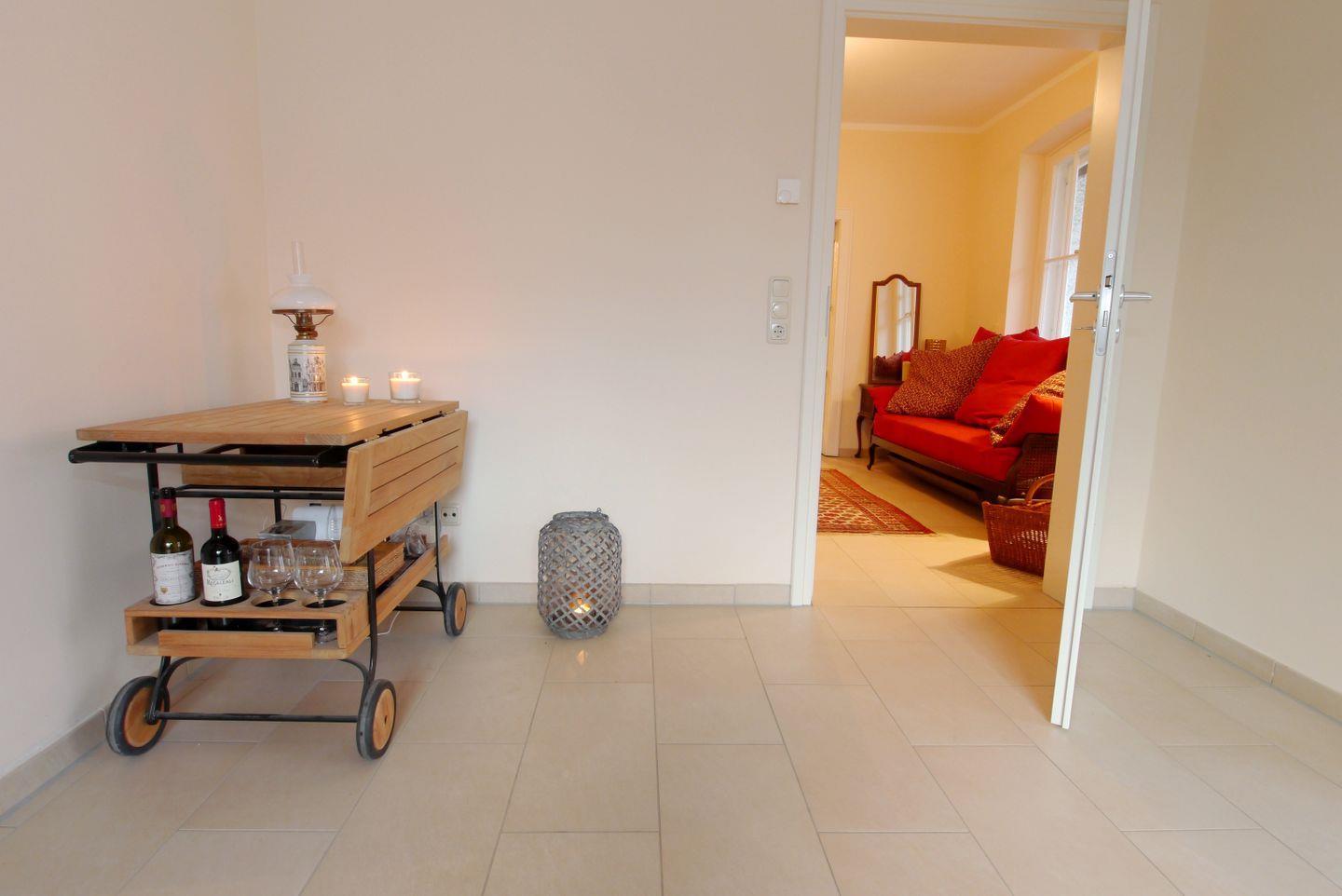 Der Zugang zur Südterrasse und ein Badezimmer mit Dusche liegen ebenfalls hier.