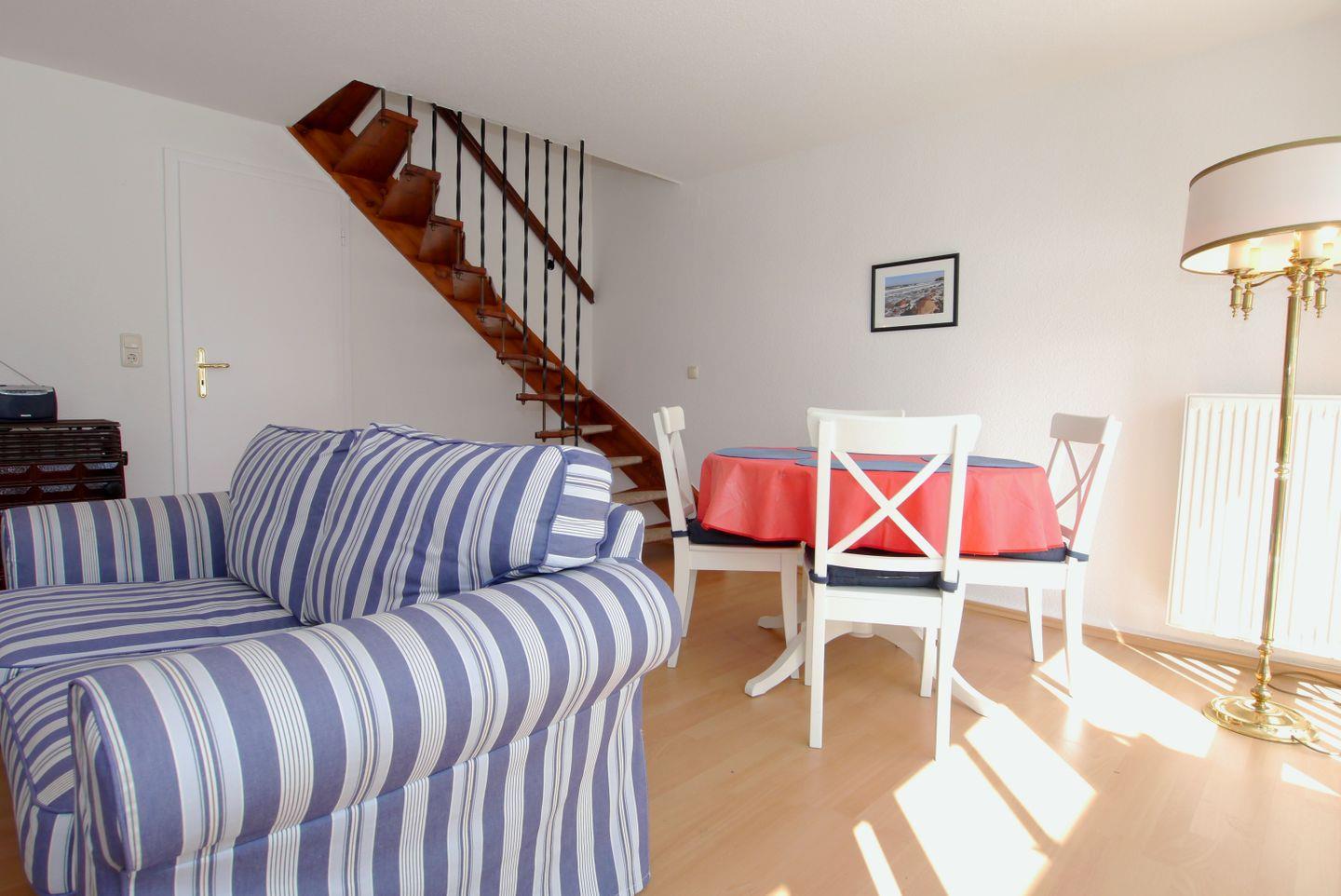 Am Rand einer kleinen idyllischen Feriensiedlung liegt dieses circa 60qm große Ferienhaus. Das Haus wird für maximal 2 Erwachsene und 2 Kinder vermietet. Im Erdgeschoss befinden sich die separate Küche, das Bad mit Dusche und WC sowie der Wohnraum mit Essecke und Zugang zur Südterrasse, mit anschließendem Garten. Im Obergeschoss sind zwei Schlafzimmer (einmal mit Doppelbett und einmal mit 2 Einzelbett 1,90m lang).
