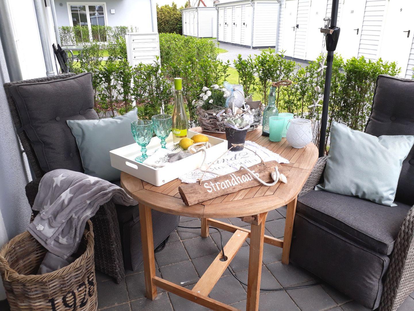 Die helle 2-Zimmer-Ferienwohnung in Zingst bietet komfortables Wohnen mit Süd-Terrasse und zentraler Lage nahe Hafen und Seebrücke.