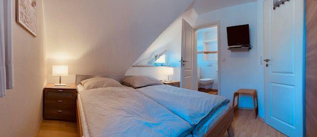 Im Erdgeschoss ist der Wohnbereich, mit integrierter Küche, Essecke und Zugang zur Westterrasse sowie ein Gäste WC. Auf der 1.Etage sind zwei Schlafzimmer (einmal mit Ehebett und einmal mit einem Einzelbett und einer Schlafcouch) sowie zwei Bäder jeweils mit Dusche und WC. Im 2.OG ist auf der offenen Galerie ein weiteres abgetrenntes Schlafzimmer mit einem Doppelbett 180x200cm. Sämtliche Schlafzimmer sind jeweils mit einem Fernsehgerät ausgestattet. Zum Haus gehören 2 PKW-Stellplätze, ein Fahrradschuppen, ein großer Napoleon Gasgrill und eine Waschmaschine ist ebenfalls vorhanden.
