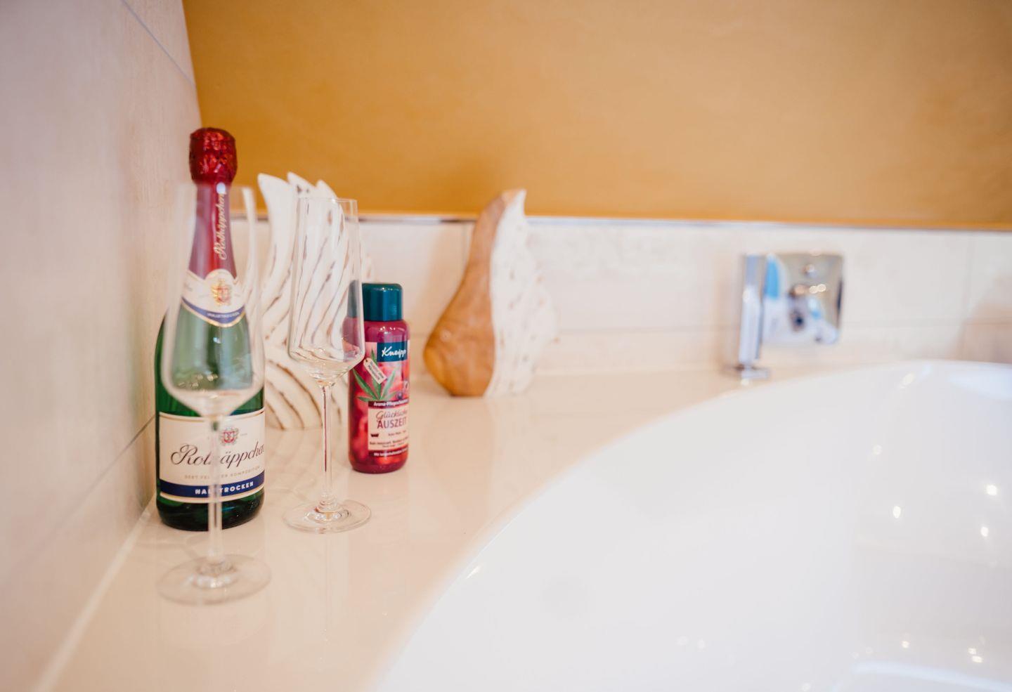 Über eine Treppe gelangen Sie in das offen ausgebaute Obergeschoss sowie in das zweite Bad mit Rundwanne und eingebauter Soundanlage sowie einer großzügigen Dusche. Vom Flur im Obergeschoss betreten Sie zwei weitere Schlafzimmer, die ebenfalls bis in die Dachspitze ausgebaut sind und über bodentiefe Holzfenster mit Sonnenschutzglas verfügen. Eins der genannten Zimmer ist mit einem weiteren Extra ausgestattet. Der Traum einer jeden Frau/eines jeden Mannes - Ein Ankleidezimmer. In einem weiteren Zimmer befindet sich dann das Schlafzimmer für die 5. Person. Die Benutzung der Waschmaschine kostet 2 € pro Waschgang.
