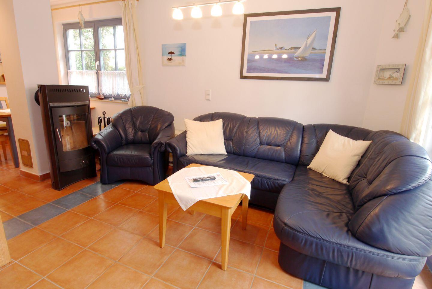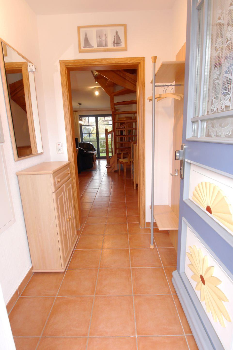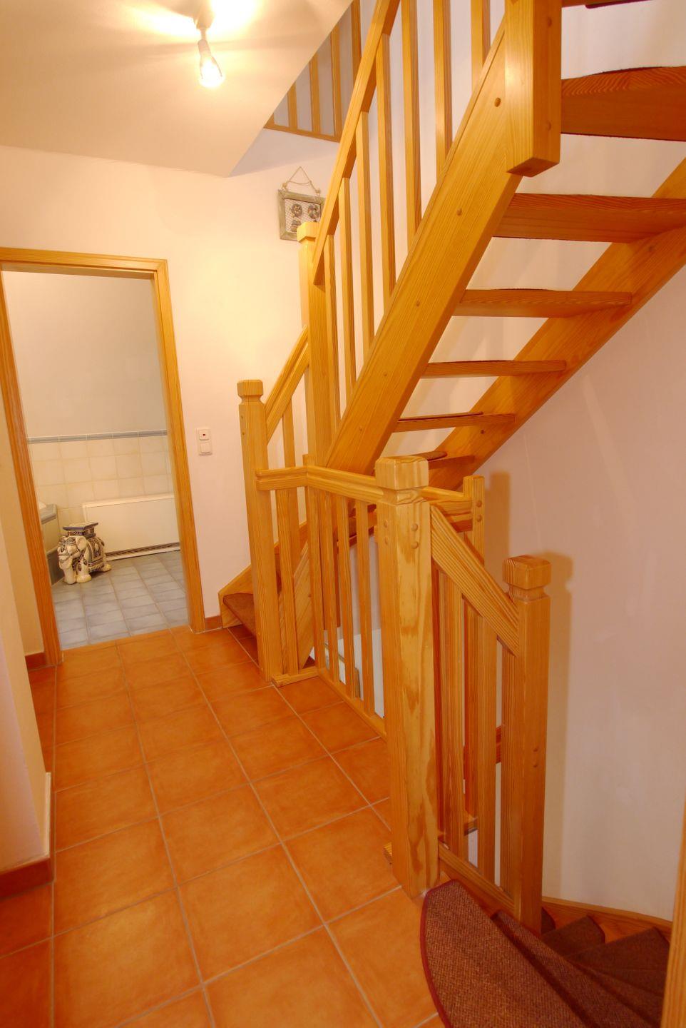 Im Erdgeschoss befinden sich der Wohn-Essbereich mit integrierter Küche und der Zugang zur Terrasse. Im 1. Obergeschoss ist ein Schlafzimmer mit Ehebett und das Bad mit Eckbadwanne, Dusche und WC. Im Dachgeschoss ist auf der offenen Galerie ein weiteres Schlafzimmer mit 2 Einzelbetten. Das Haus ist mit einer Waschmaschine ausgestattet. Ihre Fahrräder können Sie im dazugehörigen Fahrradschuppen abstellen.