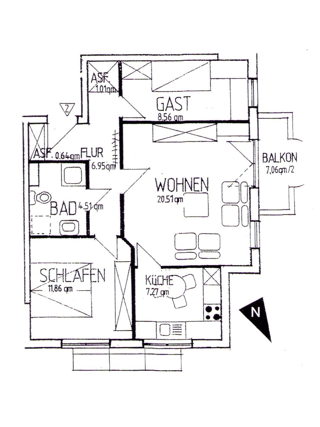 Wohnfläche 64 m²