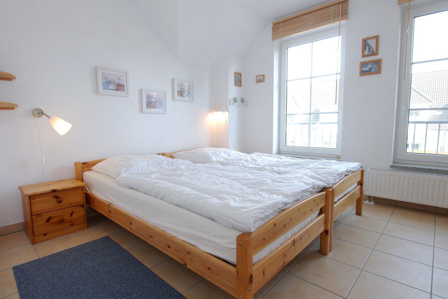 Im Zentrum von Zingst, nur wenige Minuten von Fußgängerzone und Einkaufsmöglichkeiten entfernt, befindet sich dieses Reihenhaus. Für max. 4 Erwachsene + 2 Kinder wird dieses 82 qm große Haus vermietet. Wohn-Essbereich, mit integrierter Küche sowie ein Gäste-WC befinden sich im Erdgeschoss. 2 Schlafzimmer je mit einem Ehebett (einmal zwei zusammengestellte Einzelbetten) und einem Fernsehgerät und das Bad mit Dusche und WC sind auf der 1. Etage. Die zweite Etage ist eine offene Galerie mit zwei Einzelbetten. Das Haus ist mit einer Waschmaschine ausgestattet. Westterrasse mit Gartenanteil, Fahrradschuppen und 1 PKW-Stellplatz runden die Ausstattung ab.