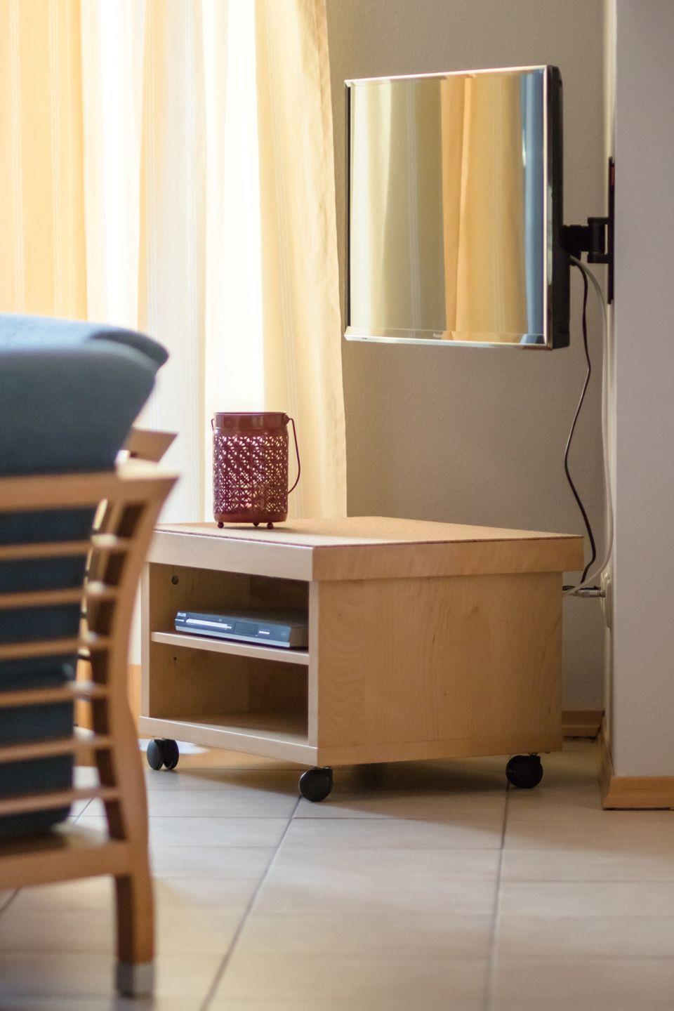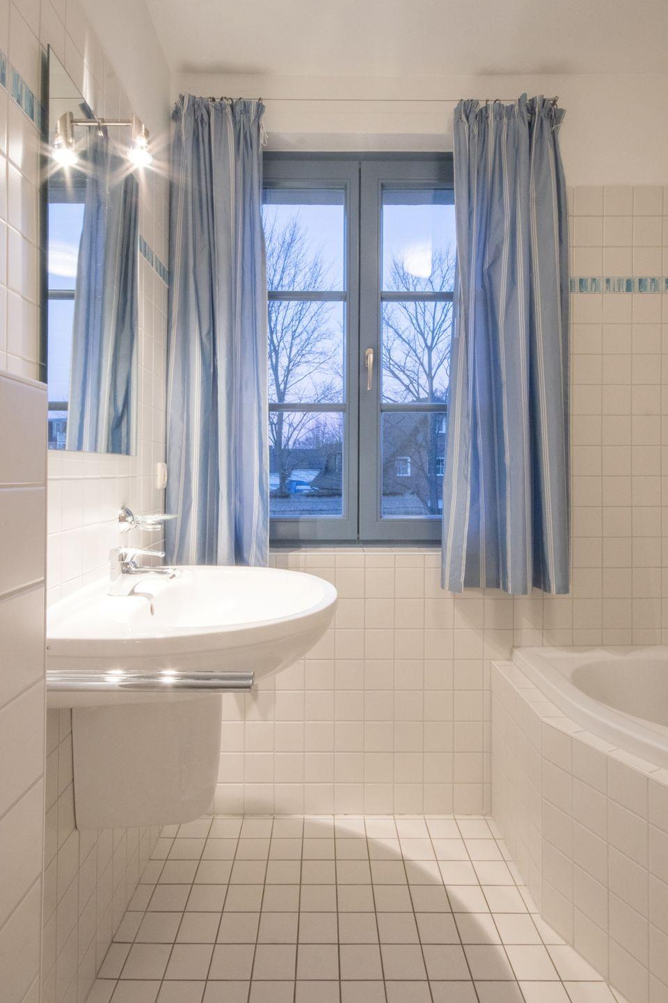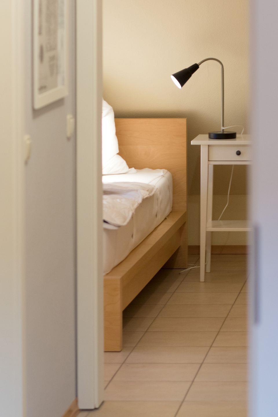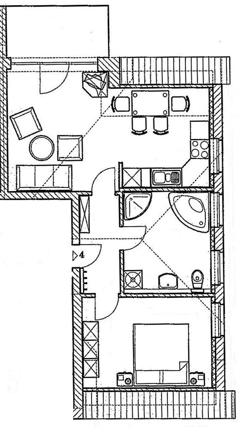 Die 50 m² große Obergeschosswohnung wird für 2-3 Personen vermietet und befindet sich in der 1. Etage. Im Wohnzimmer mit Essecke und integrierter Küchenzeile ist eine Schlafcouch für eine Person zu finden, der Zugang zum möblierten Westbalkon erfolgt ebenfalls von hier. Das Schlafzimmer ist mit einem Doppelbett ausgestattet, im geräumigen Badezimmer sind eine Dusche und eine Eckbadewanne untergebracht. Ein kleines Gartenhäuschen steht für Fahrräder zur Verfügung.